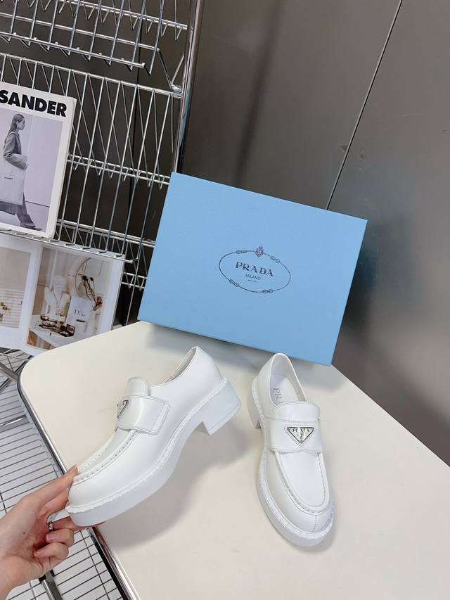 Men's 10. Top-of-the-line Prada triangle-label couple's loafers. 1:1 replica of the original counter-made mold. Non-slip, wear-resistant, imported, burst-resistant, split-edge cowhide lining with imported mixed-breed sheepskin. The sole is made of matte A-grade rubber with a hollowed-out, injected foam material for a lightweight feel. Unlike pure rubber soles on the market, this shoe is designed for women (35-40 cm). Size: Women (39-44 cm).
