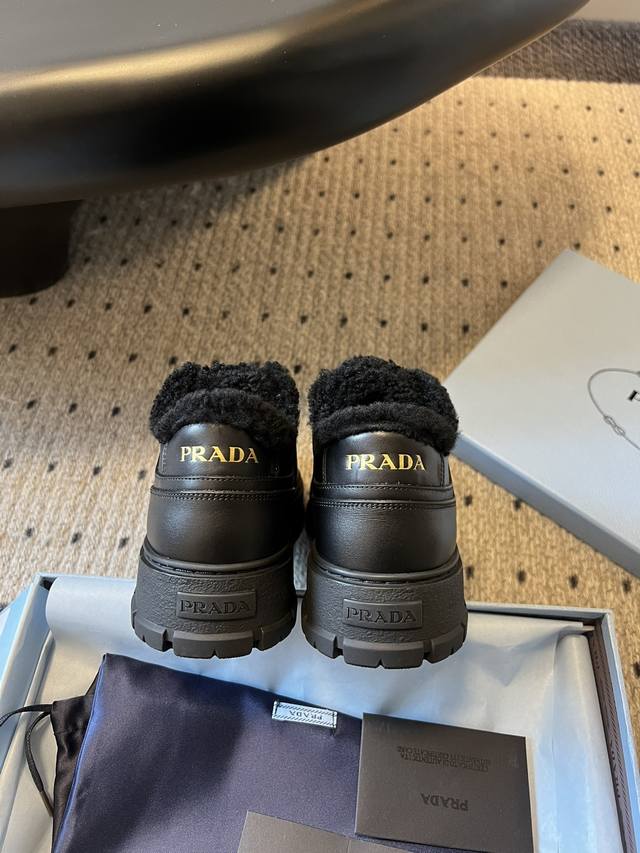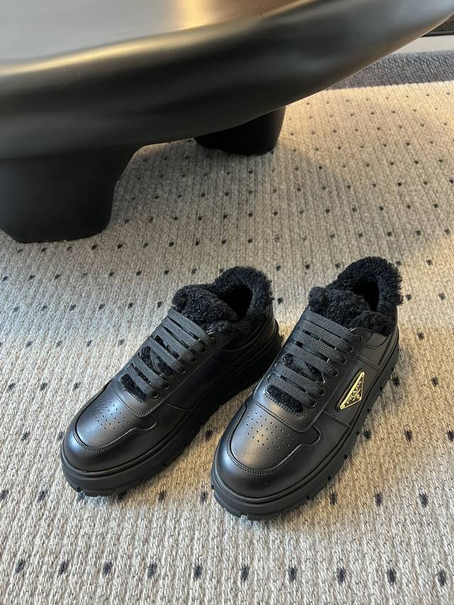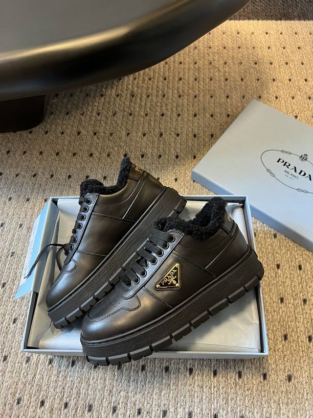 New arrival prad* 23 Prada fleece thick-soled gold label sneakers