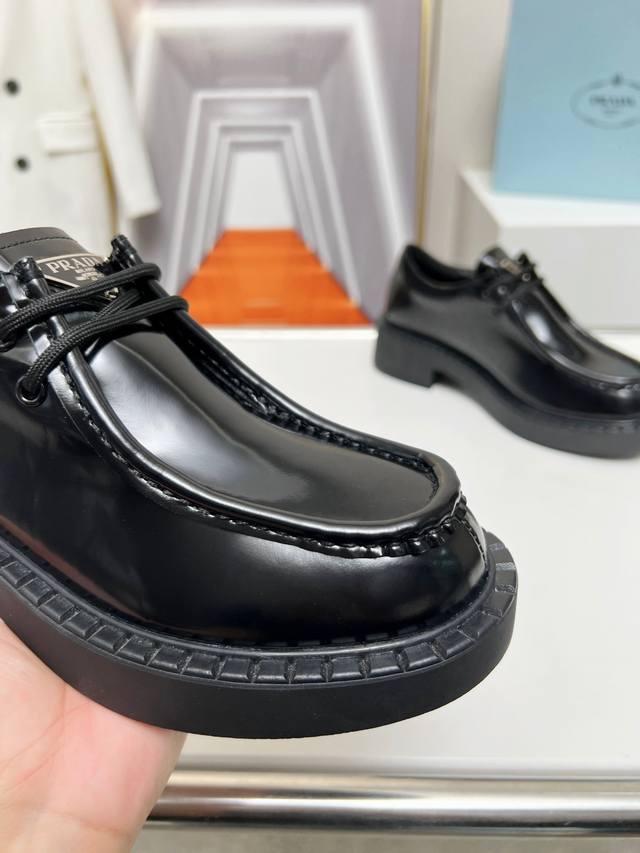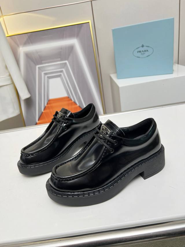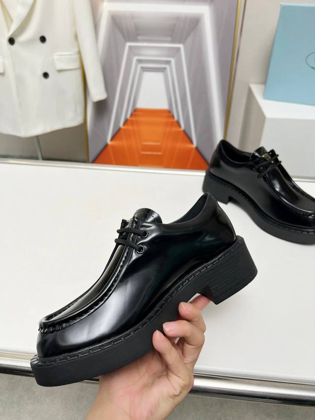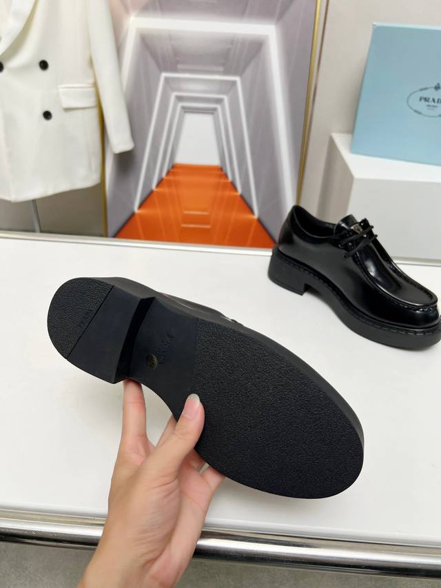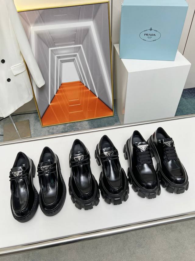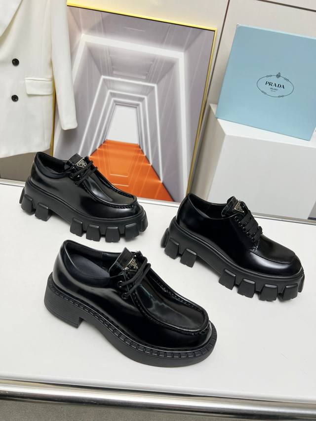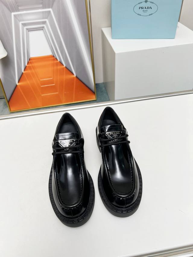 New arrival! Prada's early spring/summer upgraded version features a triangular logo and thick sole design, which adds significant height! This is a top-tier replica, purchased and disassembled from the original, perfectly capturing the feel of the authentic product! The upper is made of high-quality original split-edge cowhide, and the insole is made of top-grade mixed sheepskin. The sole is molded from scratch and is non-slip and durable. Women's sizes 35-41 are available at factory price.