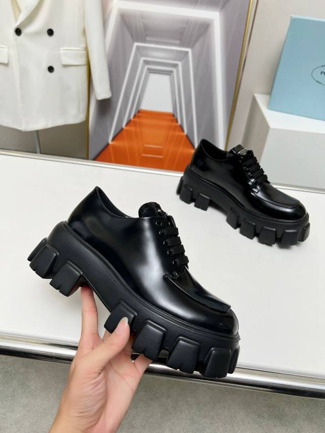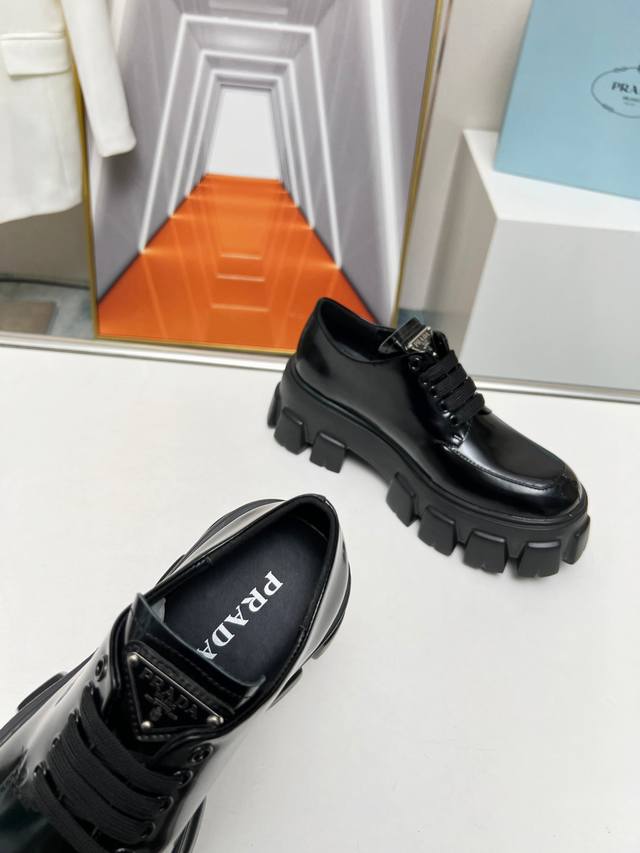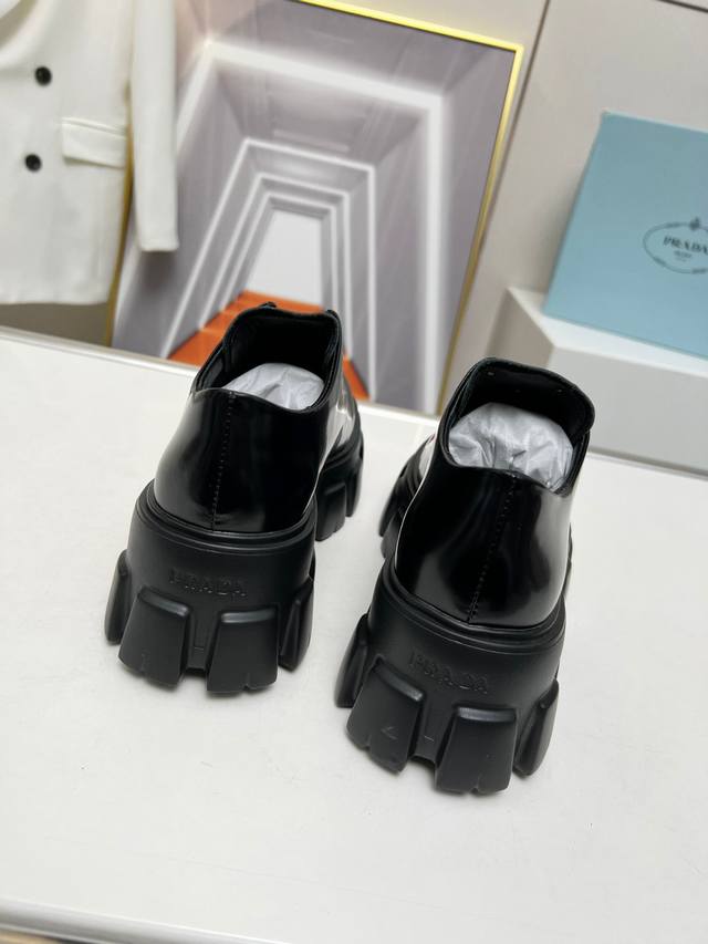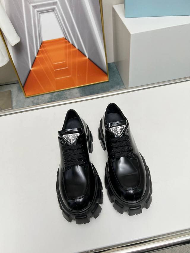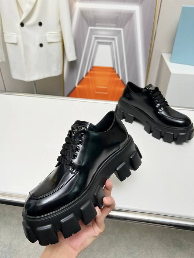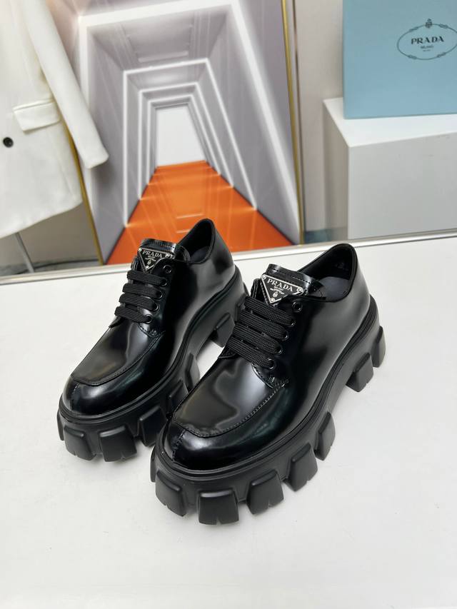 New arrival! Prada's early spring/summer upgraded version features a triangular logo and thick sole design, which adds significant height! This is a top-tier replica, purchased directly from the original and disassembled to perfectly capture the authentic feel! The upper is made of high-quality original split-edge cowhide, and the insole is made of top-grade mixed sheepskin. The sole is molded from scratch and is non-slip and durable. Women's sizes 35-41 are available at factory price.