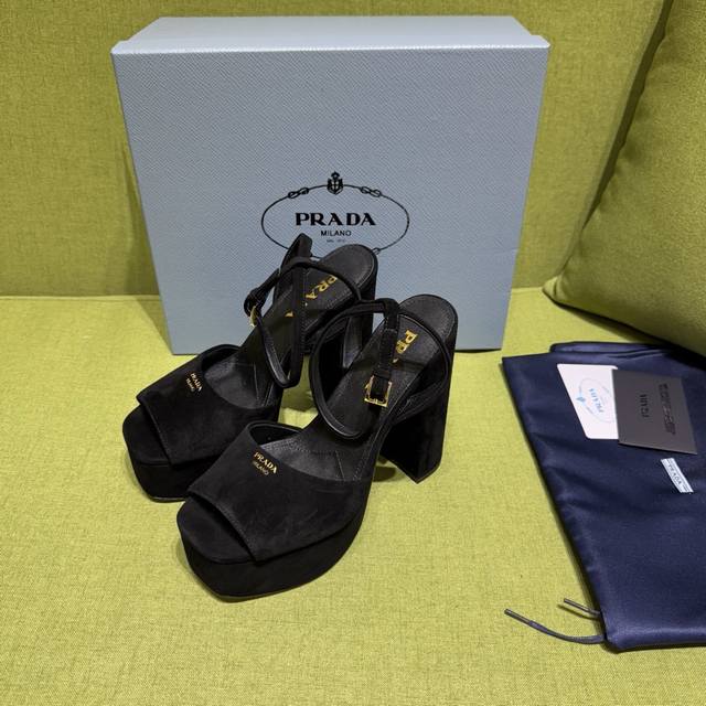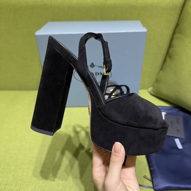 New color Prada 2025 Autumn/Winter Saffiano high-heeled platform suede sandals, embodying modern design concepts and exuding exquisite charm. The elegant colors of the fabric add a bright touch. The iconic triangular logo highlights the brand's characteristics. This logo was designed by Mario Prada. Material: Suede Lining: Lambskin Heel height: 14cm Platform: 4cm Sizes: 35-42 Custom sizes 35, 40-42 are non-refundable and non-exchangeable. Factory price (pp.):