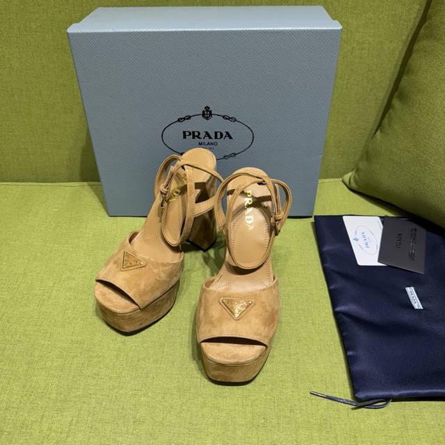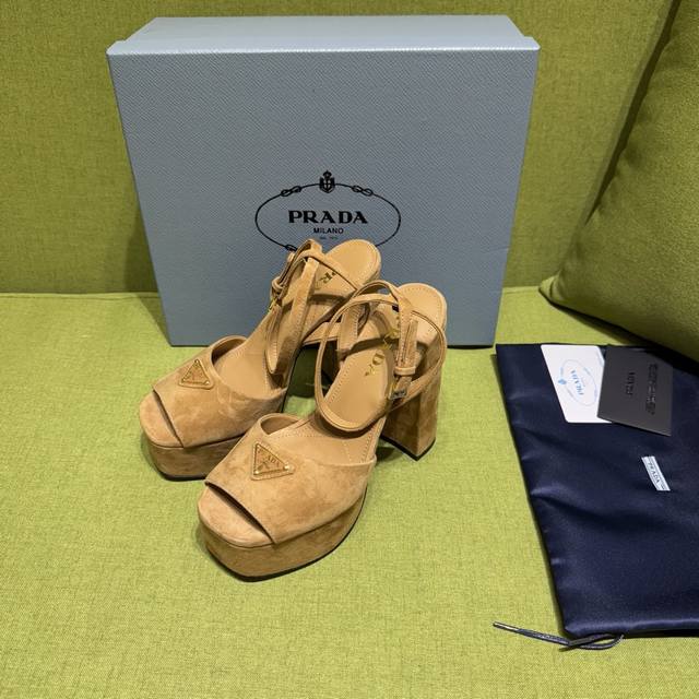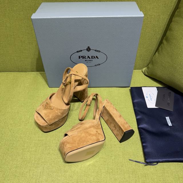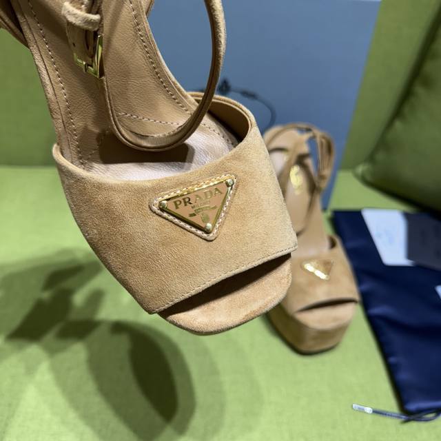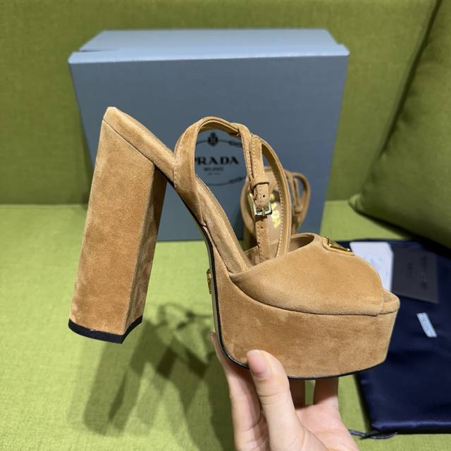 New color Prada 2025 Autumn/Winter Saffiano high-heeled platform suede sandals, embodying modern design concepts and exuding exquisite charm. The elegant colors of the fabric add a bright touch. The iconic triangular logo highlights the brand's characteristics . This logo was designed by Mario Prada. Material: Suede Lining: Lambskin Heel height: 14cm Platform: 4cm Sizes: 35-42 Custom sizes 35, 40-42 are non-refundable and non-exchangeable. Factory price (pp.):