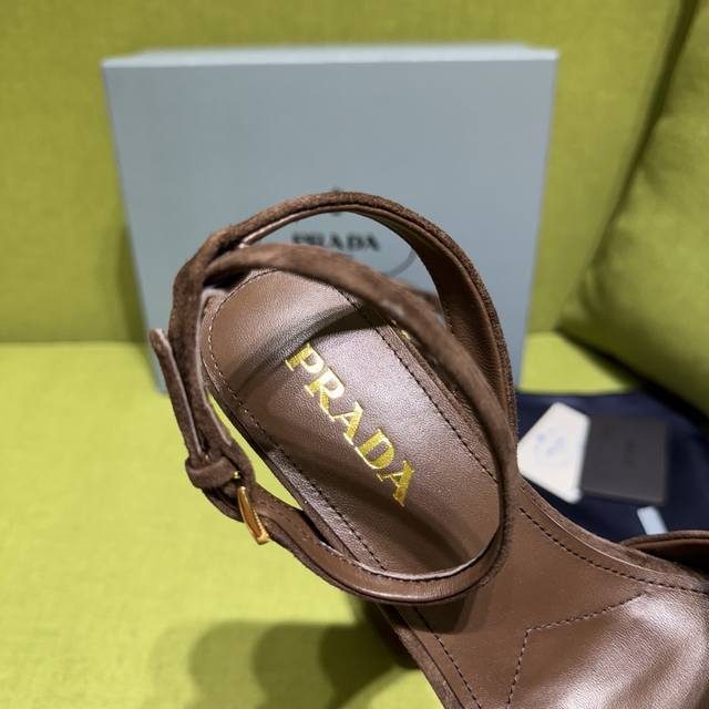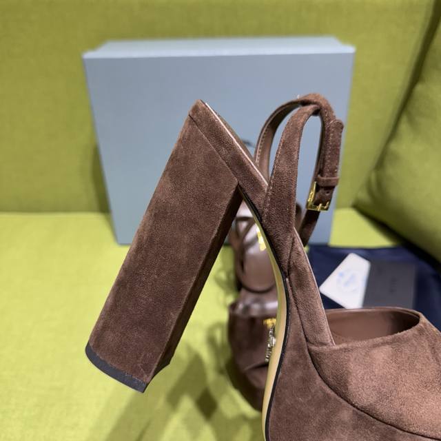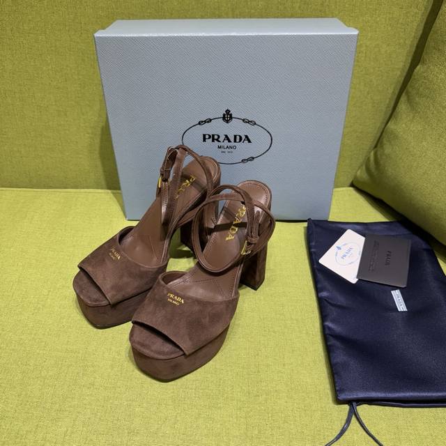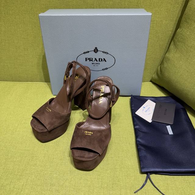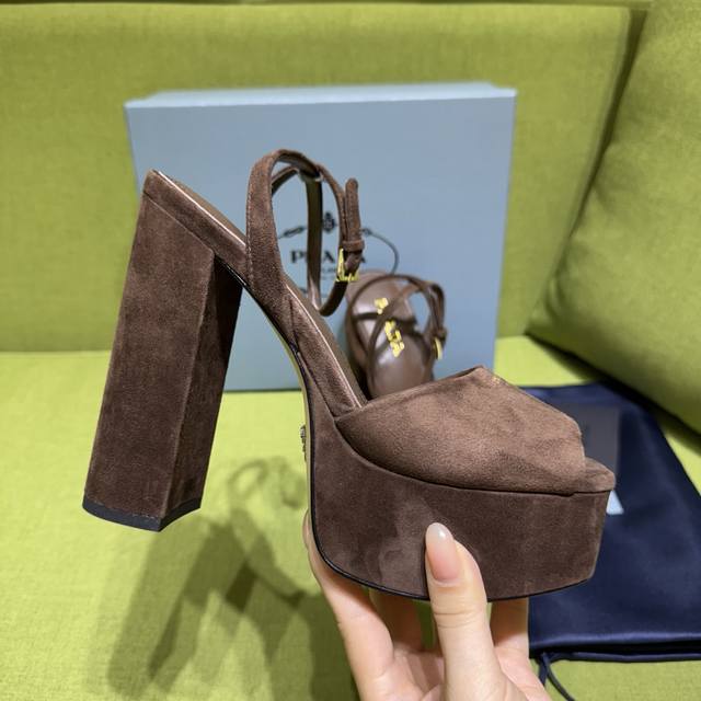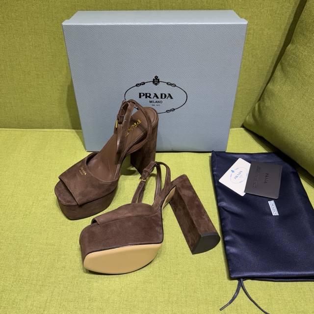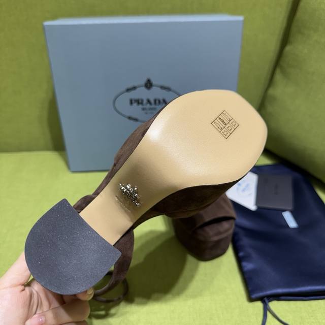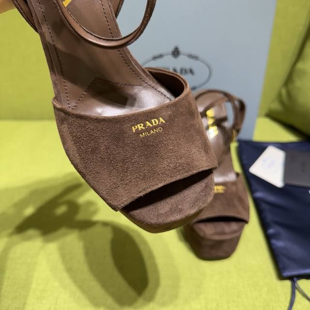New color Prada 2025 Autumn/Winter Saffiano high-heeled platform suede sandals, embodying modern design concepts and exuding exquisite charm. The elegant colors of the fabric add a bright touch. The iconic triangular logo highlights the brand's characteristics. This logo was designed by Mario Prada. Material: Suede Lining: Lambskin Heel height: 14cm Platform: 4cm Sizes: 35-42 Custom sizes 35, 40-42 are non-refundable and non-exchangeable. Factory price (pp.):