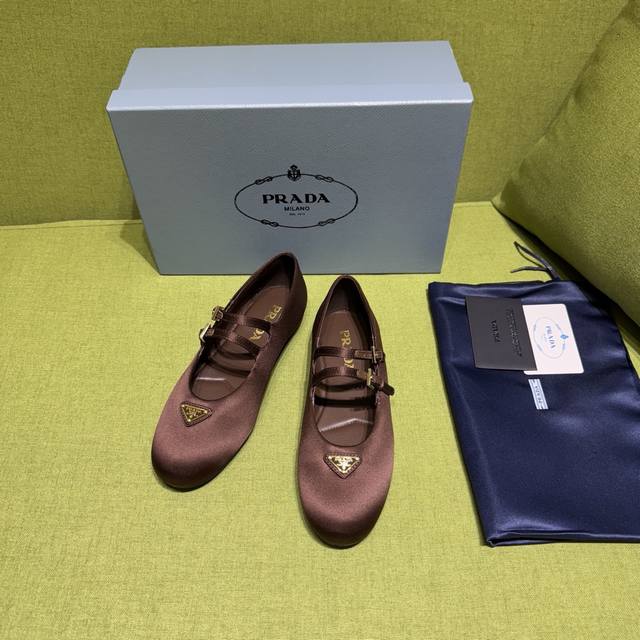 New color Prada 25Ss Autumn/Winter new style DDD Recommended by major bloggers on Xiaohongshu, 1-1 development showcasing classic charm. DDD Original TPU outsole, imported mixed sheepskin lining. DDD Ballet flats feature an elegant tapered silhouette with a lace-up design, adorned with the iconic enamel triangular metal logo. DDD Sizes: 35-42, 40-42 custom orders are non-refundable and non-exchangeable. DDD Factory price (pp.): DDD