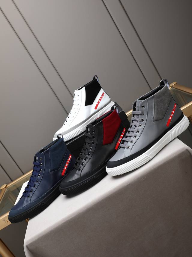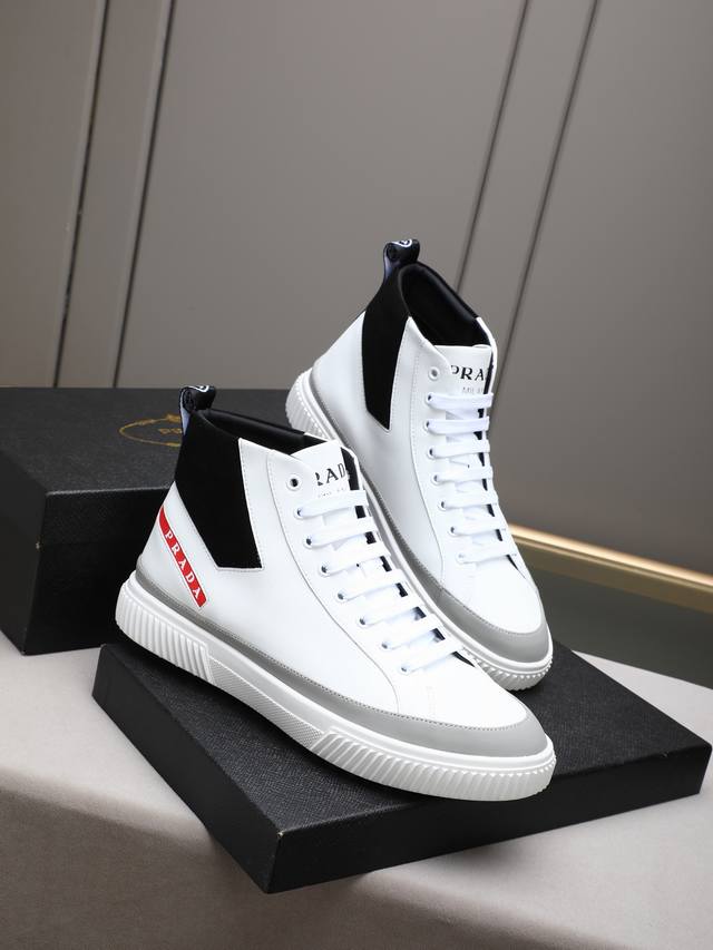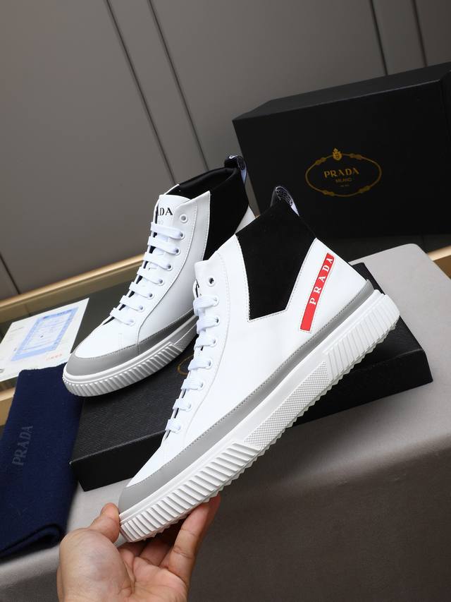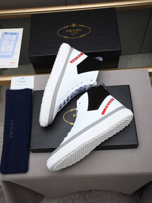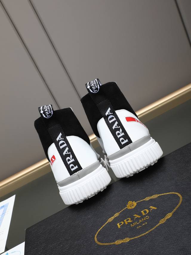 New Prada casual men's shoes. A famous Italian luxury brand, this is my current favorite style. They feel great on the feet, are stylish and fashionable, make the feet look great, and are very comfortable to walk in. The shoe shape is perfect, and they look fantastic on! The upper is made of imported cowhide with washed sheepskin lining, and the outsole is a non-slip, sports-specific sole with the logo. A comfortable and timeless men's shoe! Sizes: 38-39-40-41-42-43-44, 45 (custom orders accepted). Multiple colors available!