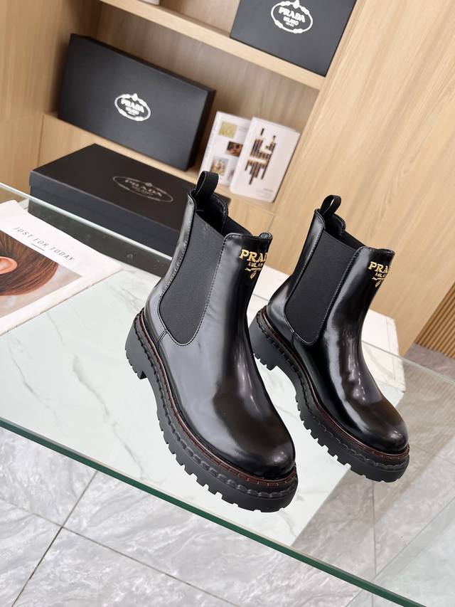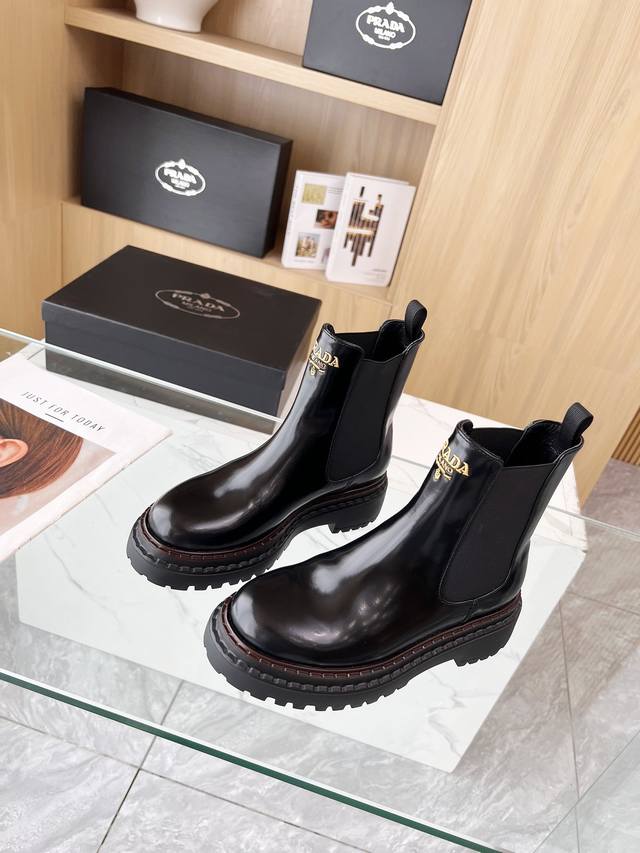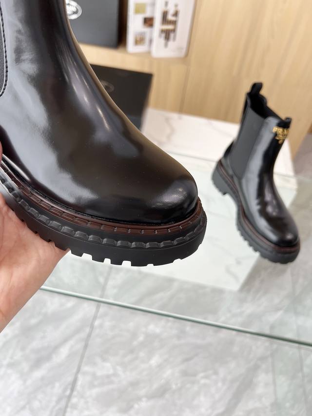New Prada Fall/Winter runway boots. These are original Taikoo Hui boots, a re-released replica. They're lightweight and comfortable to wear, featuring a triangular design. A must-have. The shoe's shape is incredibly elegant, with a distinctive design that's instantly recognizable and incredibly soft. The leather is incredibly comfortable!