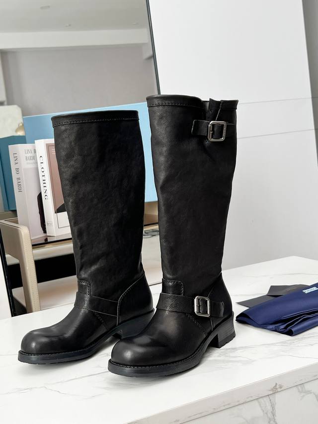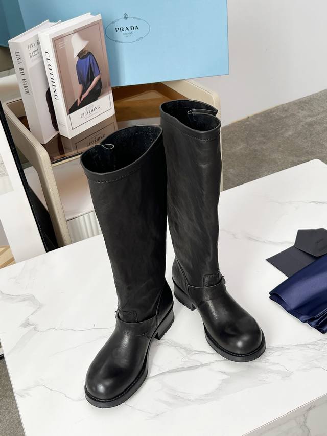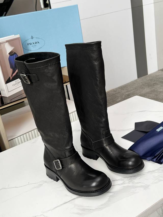 prad* 25Ss Prada retro Martin boots, knight boots, fashionable motorcycle Martin boots, easy to control, and popular. Versatile and classic shoe last, enough to conquer your little height increase and casual wear.