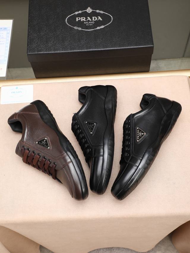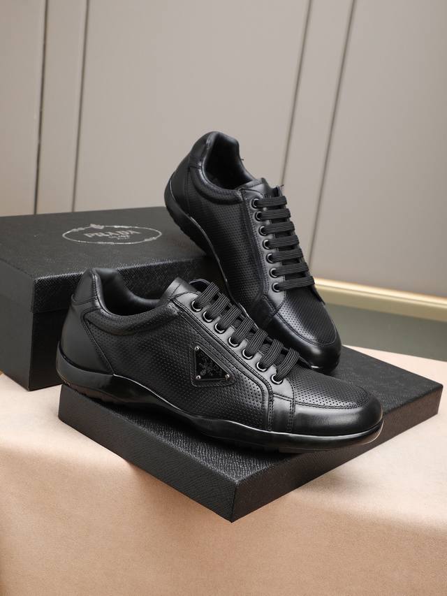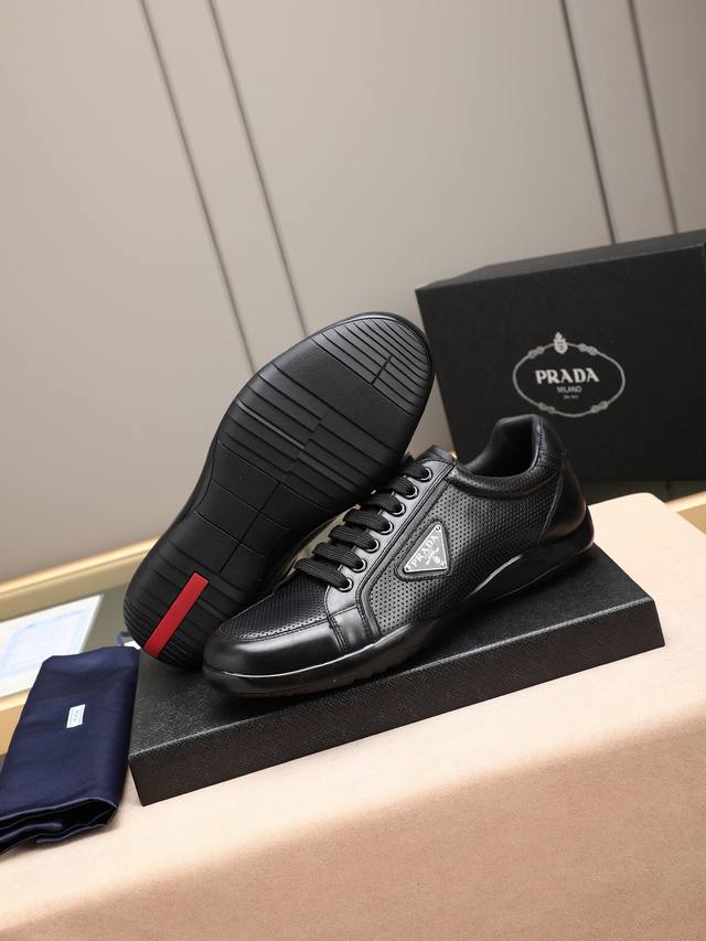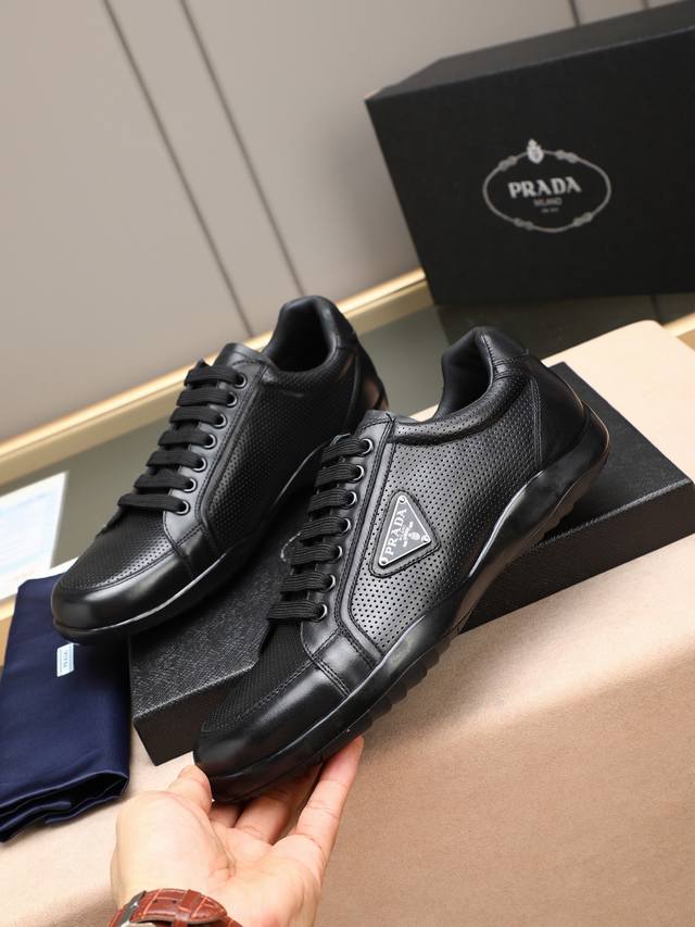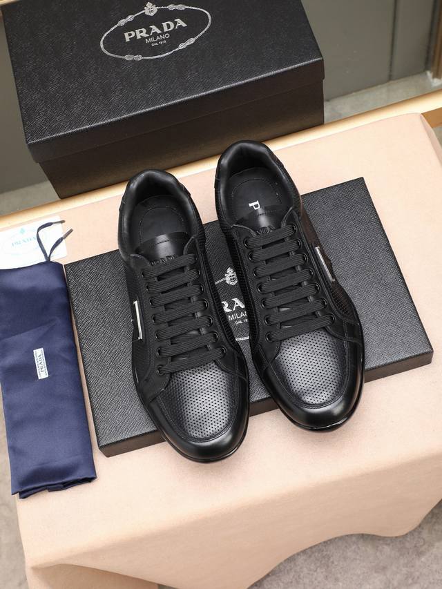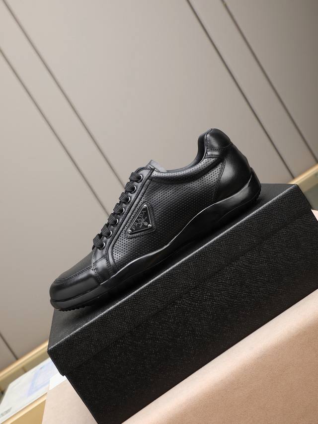 prad* Prada classic men's high-end sneakers. These sneakers are stylish and versatile, simple and modern, blending sporty style with exquisite details. Crafted from imported cowhide leather, they feature a rubber sole and an embossed logo on the tongue. A simple and fashionable item that will never go out of style! Sizes: 39-44, 38, 45 (custom sizes available).