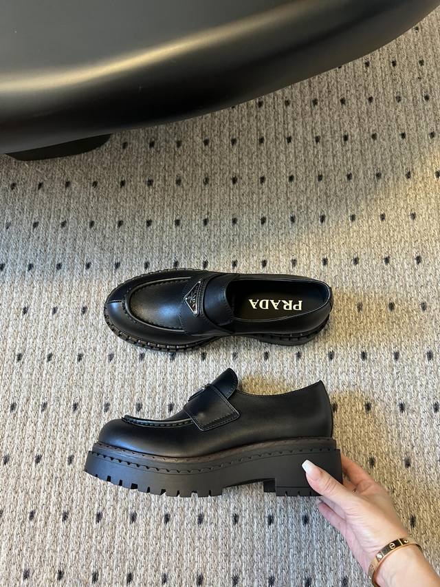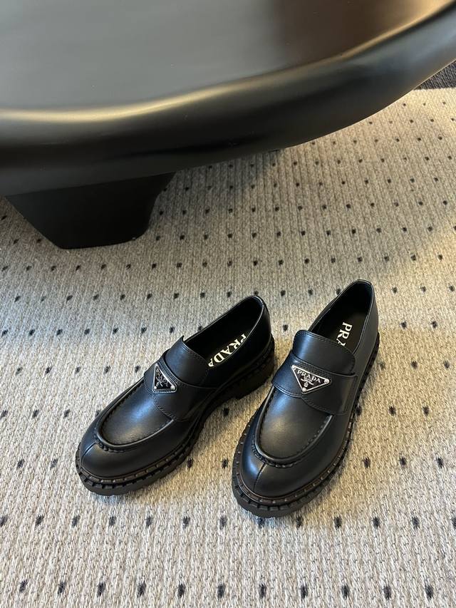 prad* Prada's soft cowhide thick-soled classic triangle-shaped loafers