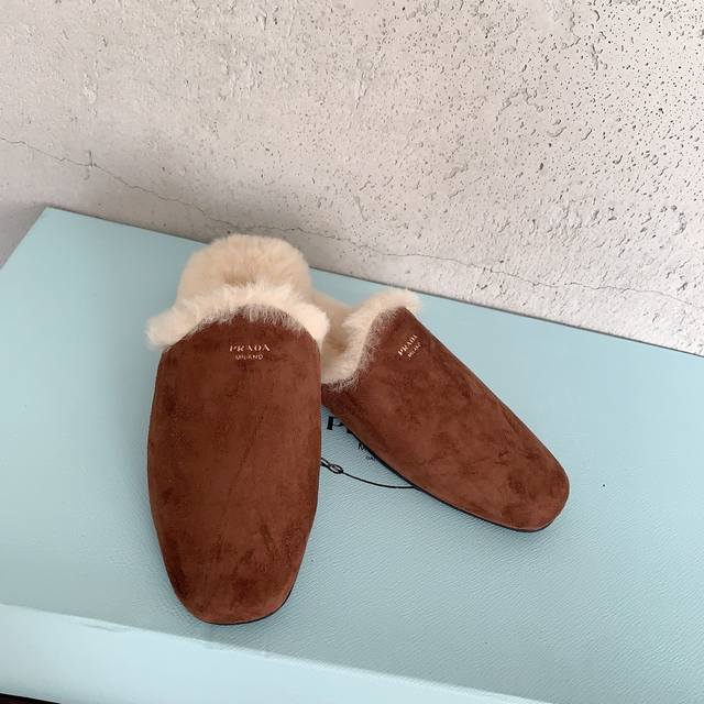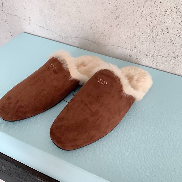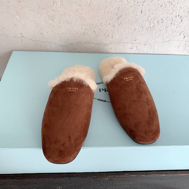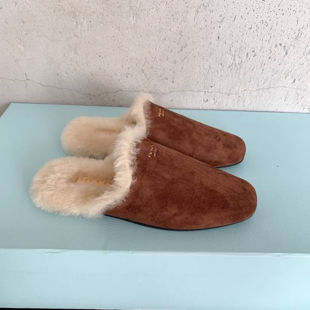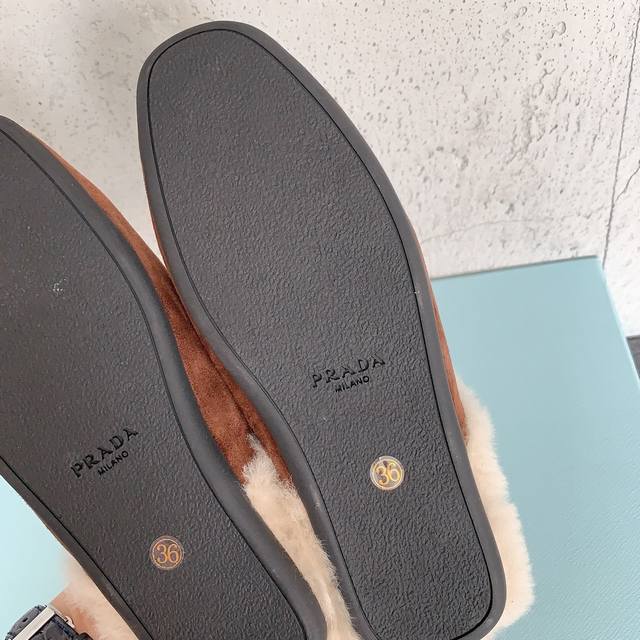 Prad*2025 Early Autumn New Style Furry Slippers, a must-have trendy item, simple and relaxed, your secret weapon for creating a stylish look. Made with imported sheepskin and wool, treated with multiple special processes to reduce shedding. Custom-molded non-slip rubber outsole. Sizes: 35-39# 40# can be customized, no returns or exchanges.