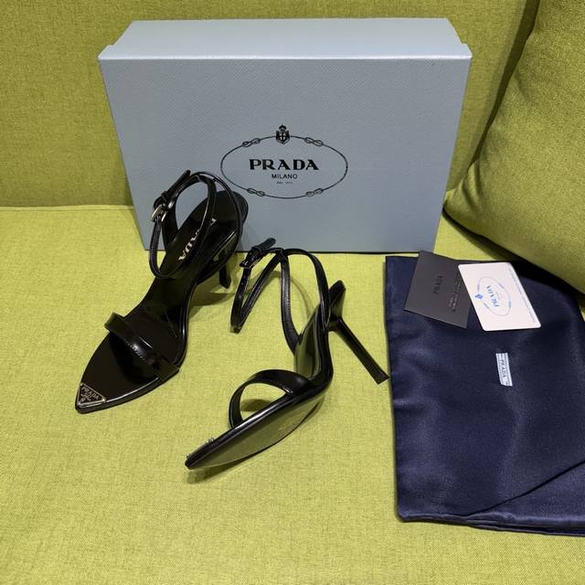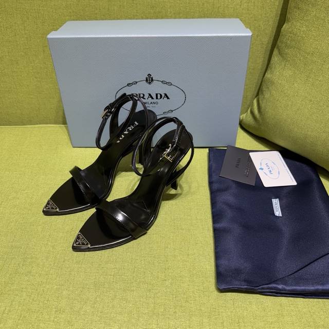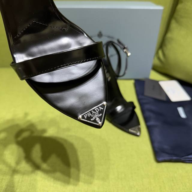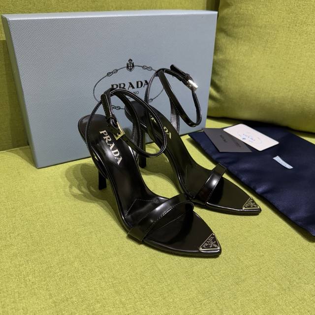 Prada 2025 Autumn/Winter New Arrivals - Recommended by major bloggers on Xiaohongshu. This metallic leather sandal showcases elegant and feminine grace with a modern style. The iconic logo triangle shape inspires the geometric lines of the heel, while the ankle strap completes the pointed toe silhouette. Heel Height: 9cm Material: Split-edge cowhide, sheepskin lining & Italian leather sole Sizes: 35-42 (35, 40-42 are custom-made and non-refundable) Factory Price (PP):