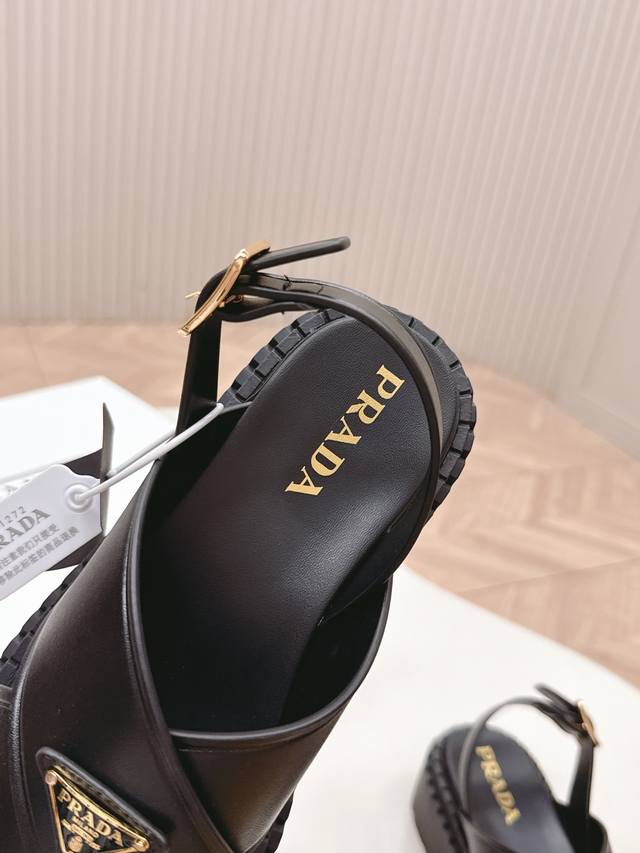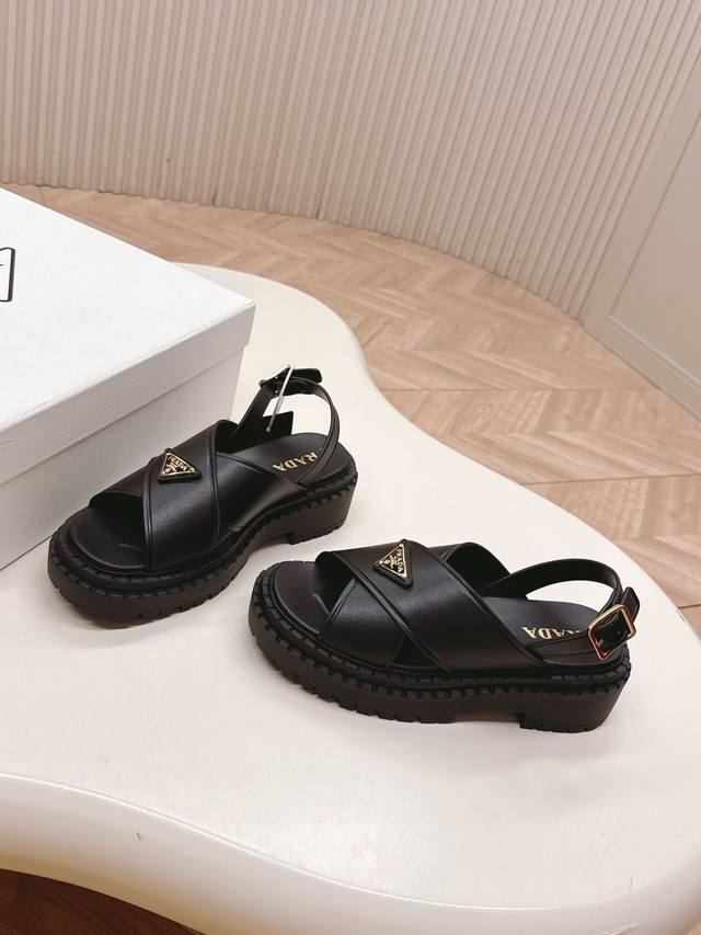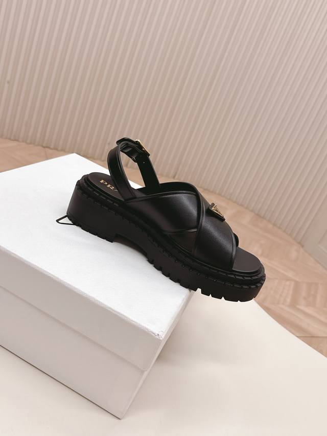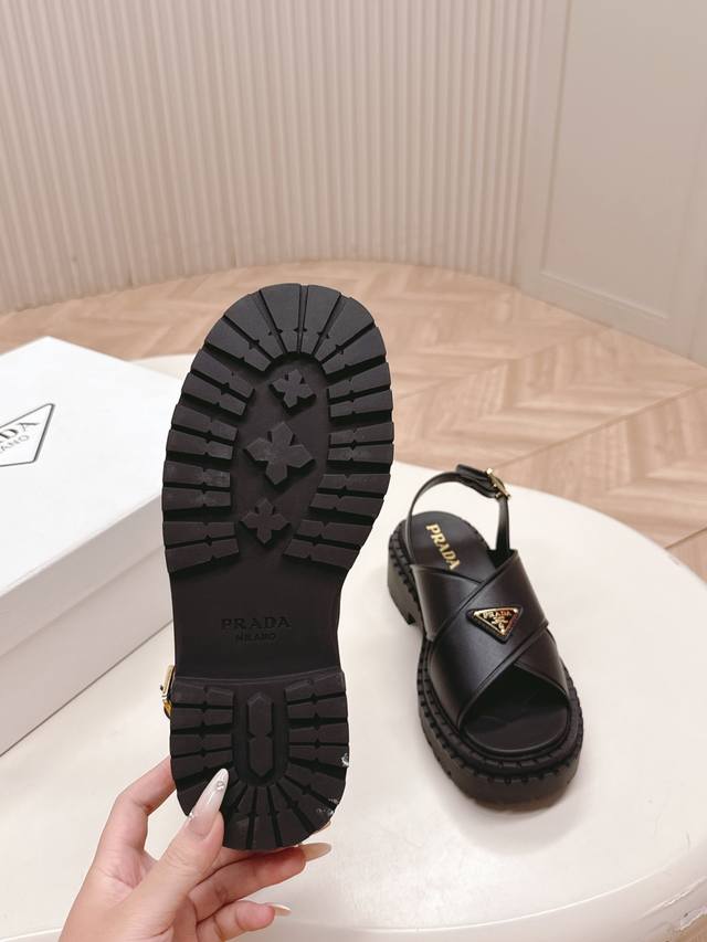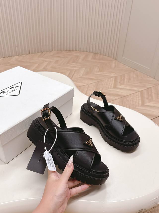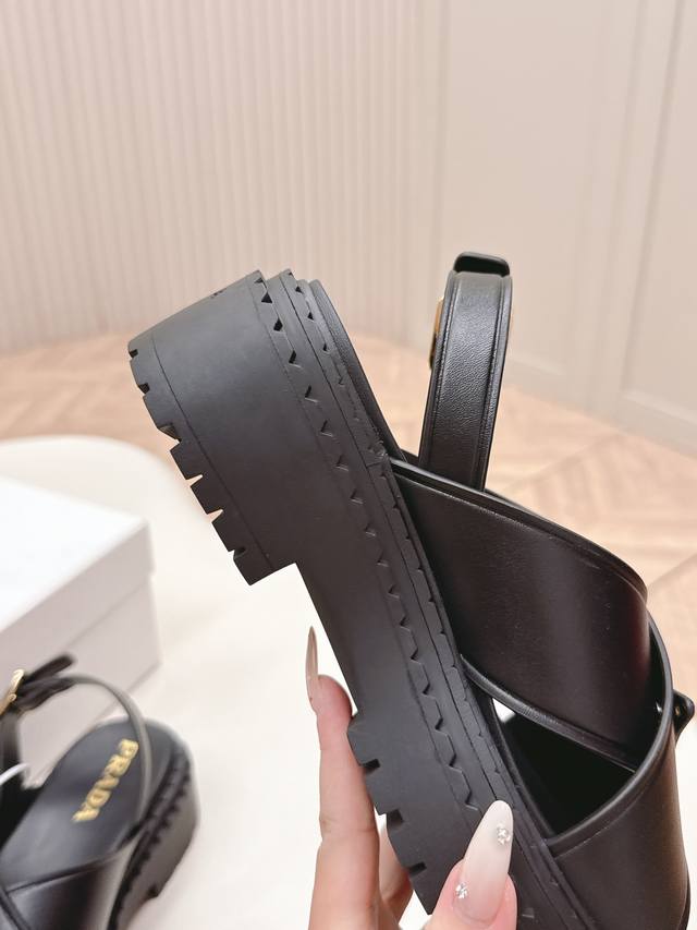Prada 2025 Spring/Summer New Collection Roman Platform Sandals - Latest Runway Style, Classic Upgraded for Comfort and Style. Every color looks great, designed to suit different styles. Upper: Original custom-made cowhide leather welt. Lining: Original custom-made sheepskin lining, cowhide insole. Outsole: Original molded non-slip outsole. Sizes: 35-40.