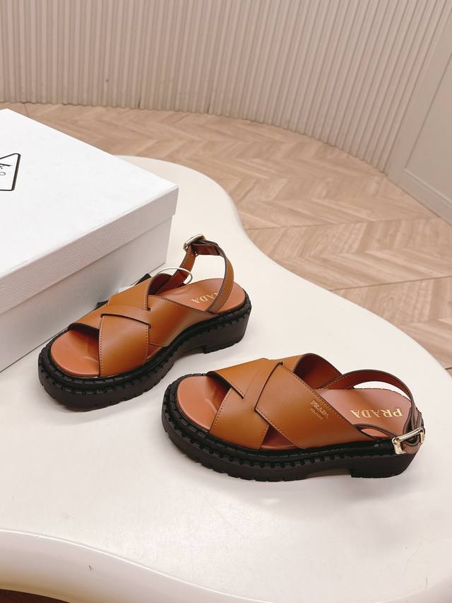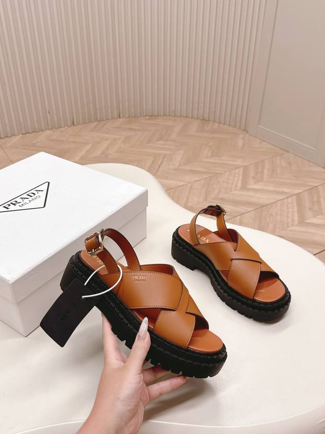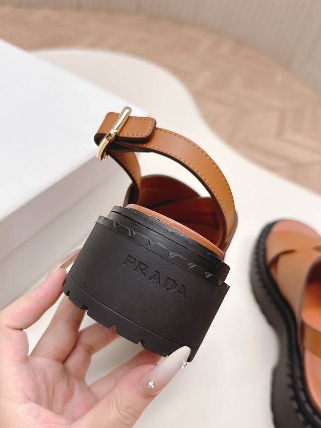 Prada 2025 Spring/Summer New Collection Roman Platform Sandals - Latest Runway Style, Classic Upgraded for Comfort and Style. Every color looks great, designed to suit different styles. Upper: Original custom-made cowhide leather welt. Lining: Original custom-made sheepskin lining, cowhide insole. Outsole: Original molded non-slip outsole. Sizes: 35-40.