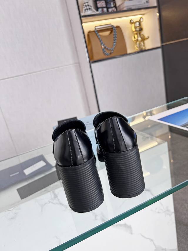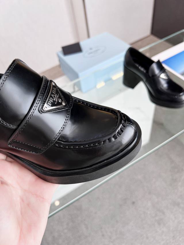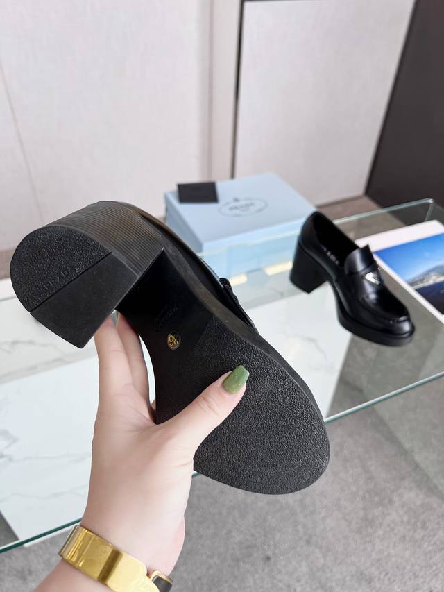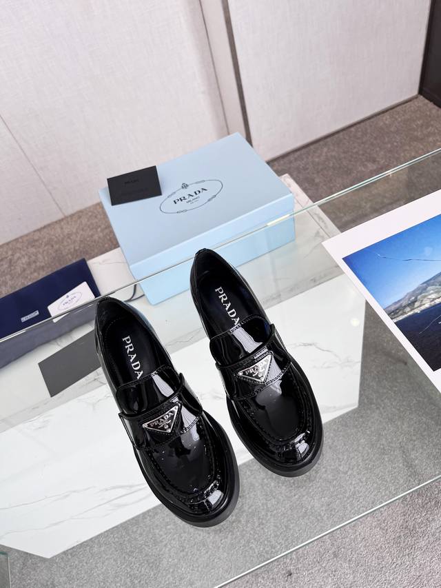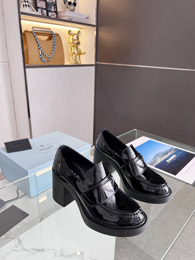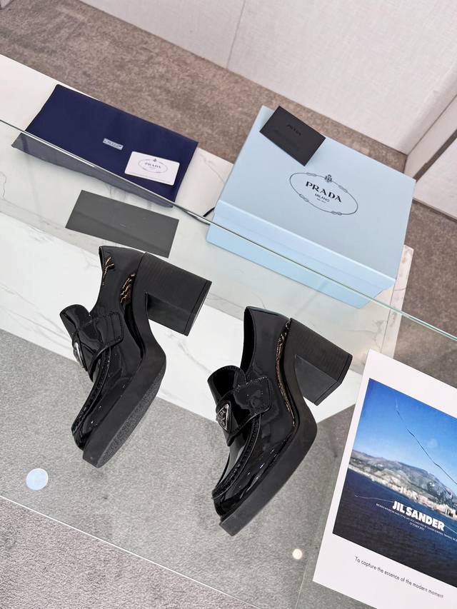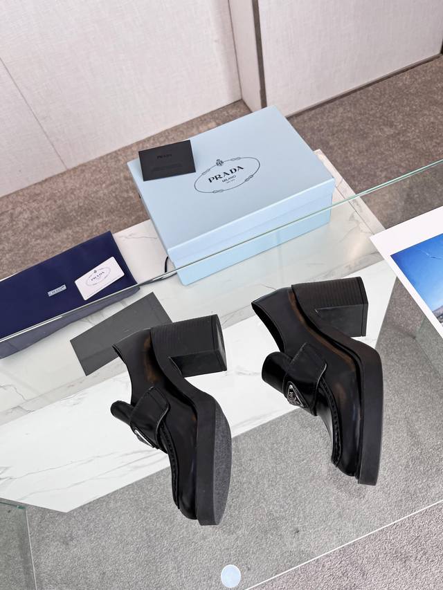 Prada 223 Spring/Summer New Arrival: Mary Jane Shoes! A super hot item from the Glow pop-up store! A must-have from the S-series, these round-toe, triangle-buckle Mary Jane shoes are the same style worn by internet celebrities like Qiao Xin, Cheng Xiao, and Liu Lingzi! Stylish and versatile, a great item! Exclusive new arrival! For ladies who love wearing heels but are afraid of getting tired, check this out! The square block heel will make your steps light and comfortable, 100% fatigue-free, and incredibly stable! The triangle logo has the same texture as the original. Available in patent leather and split-edge beaded cowhide. Heel height 8cm. Size: 35-40. 41 Made to order.