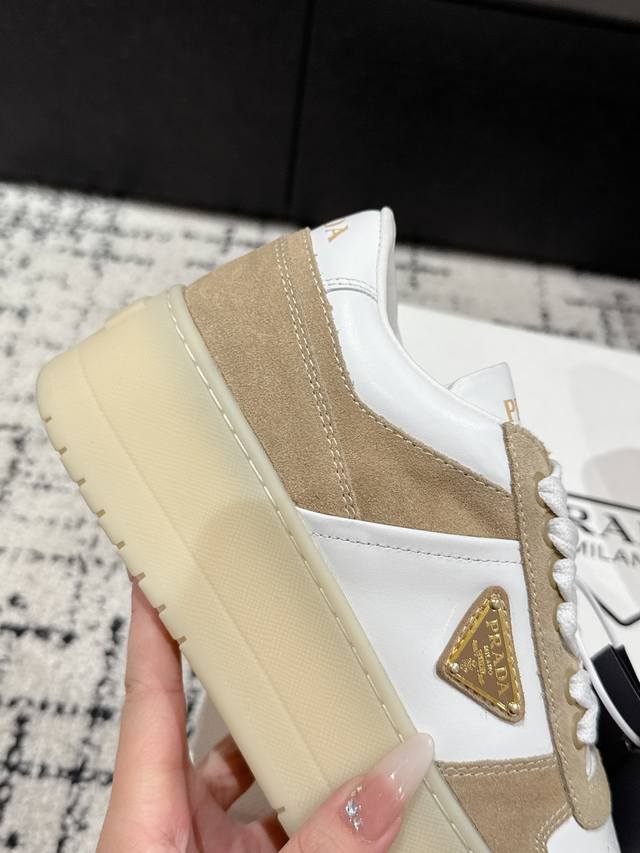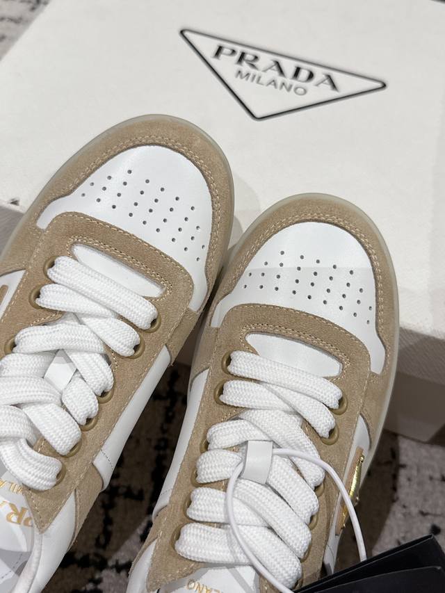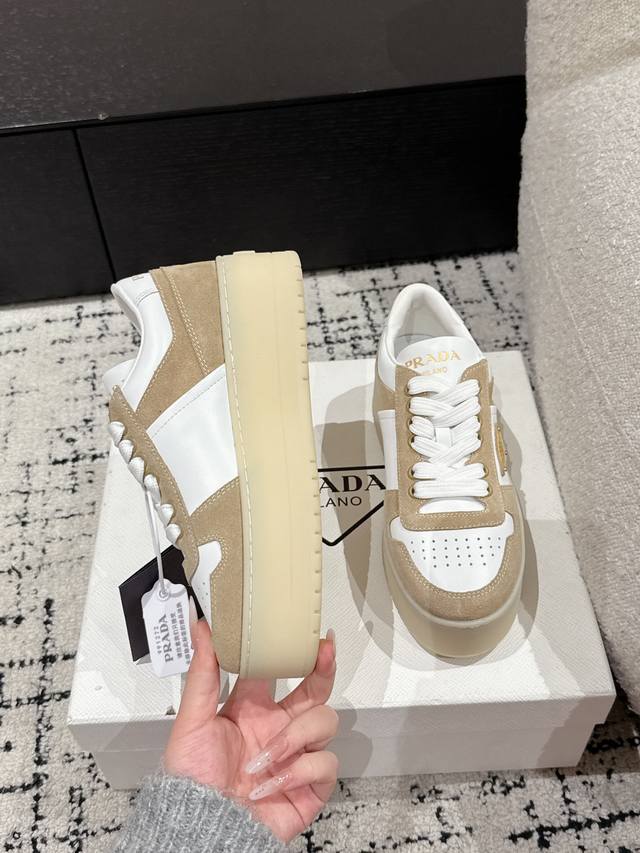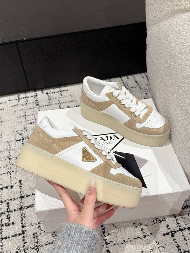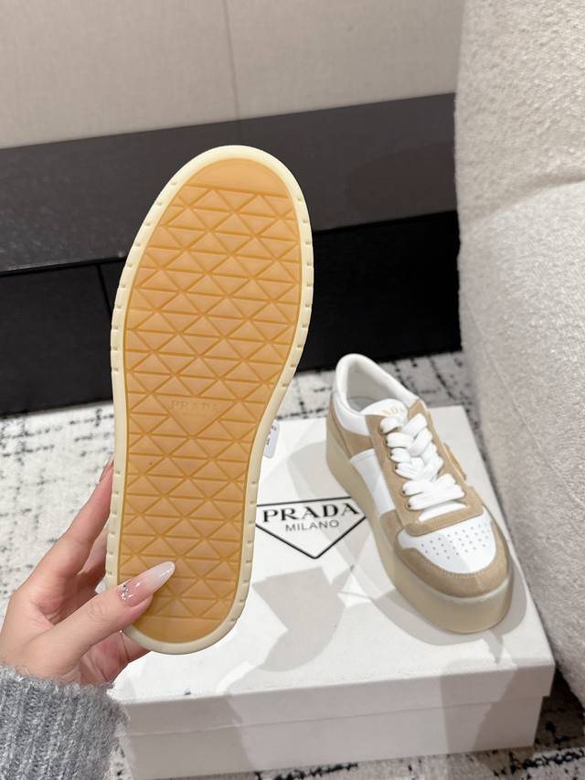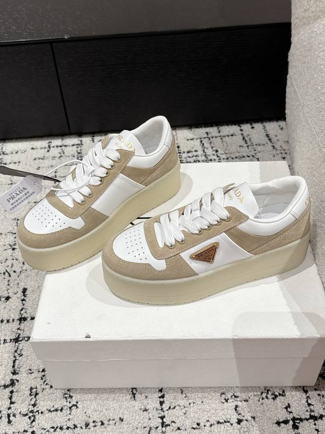 Prada 25 Latest Downtown Bold Series Platform Triangle Logo Casual White Sneakers DDD Sporty design with exquisite details. Crafted from perforated leather, the distinctive platform sole presents a unique modern style. The Prada logo is interpreted from different angles , adorned with the iconic enamel-coated triangle metal logo, showcasing a unique classic style Ddd Comes with exquisite boutique packaging Ddd Material: Original custom imported top-grain cowhide Ddd Lining: Soft sheepskin lining Ddd Outsole: Original molded ultra-lightweight foam outsole Ddd Sole thickness: 4.5Cm Ddd Size: #35-41 40.41 Custom-made, no returns or exchanges Ddd