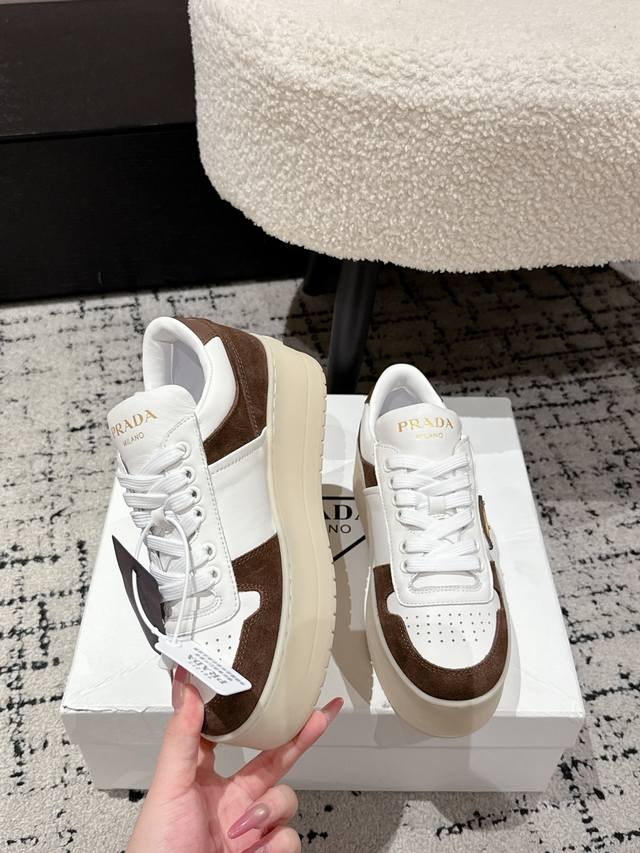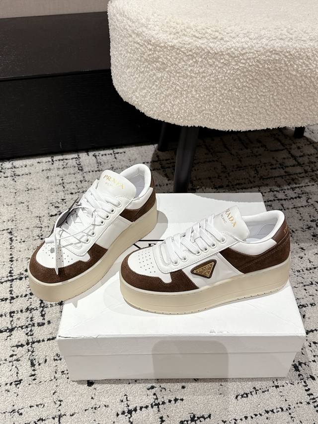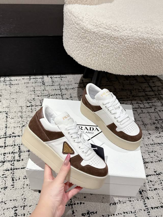 Prada 25 Latest Downtown Bold Series Platform Triangle Logo Casual White Sneakers