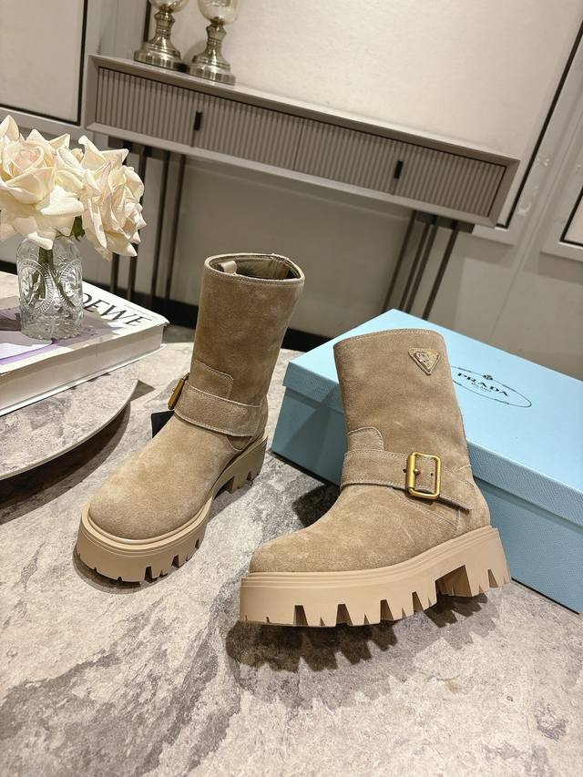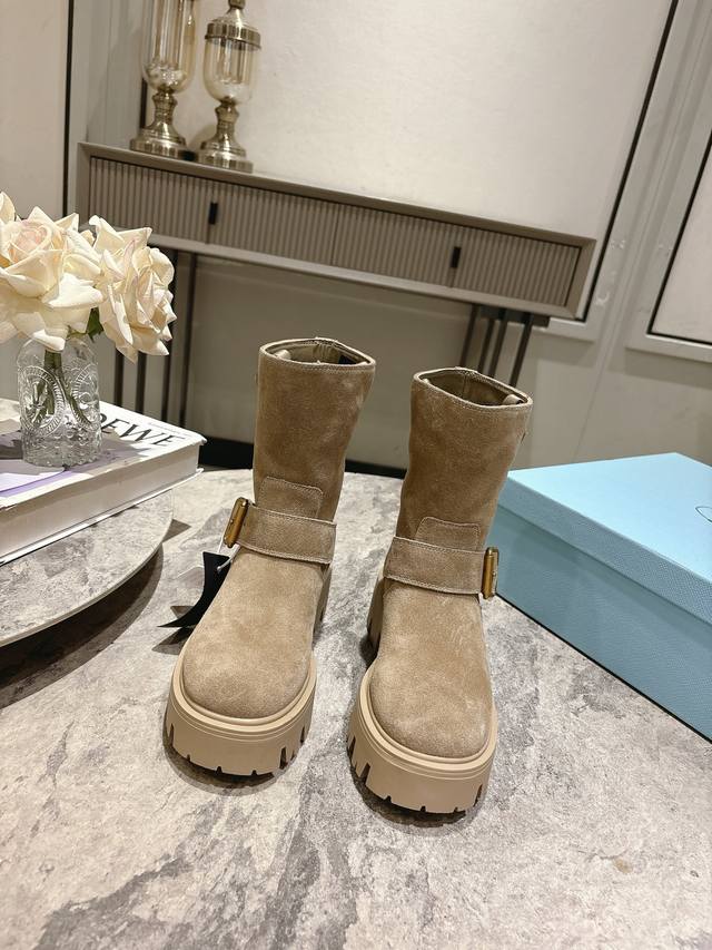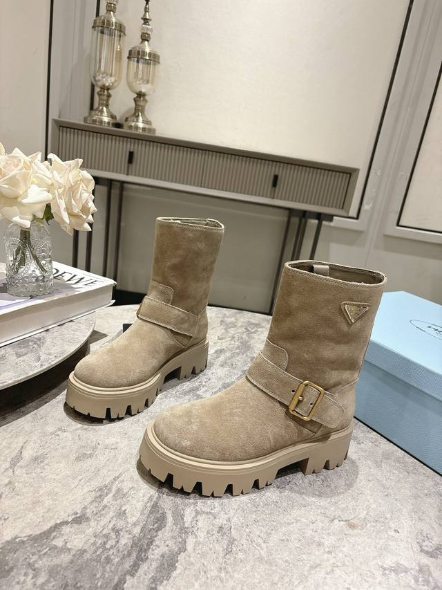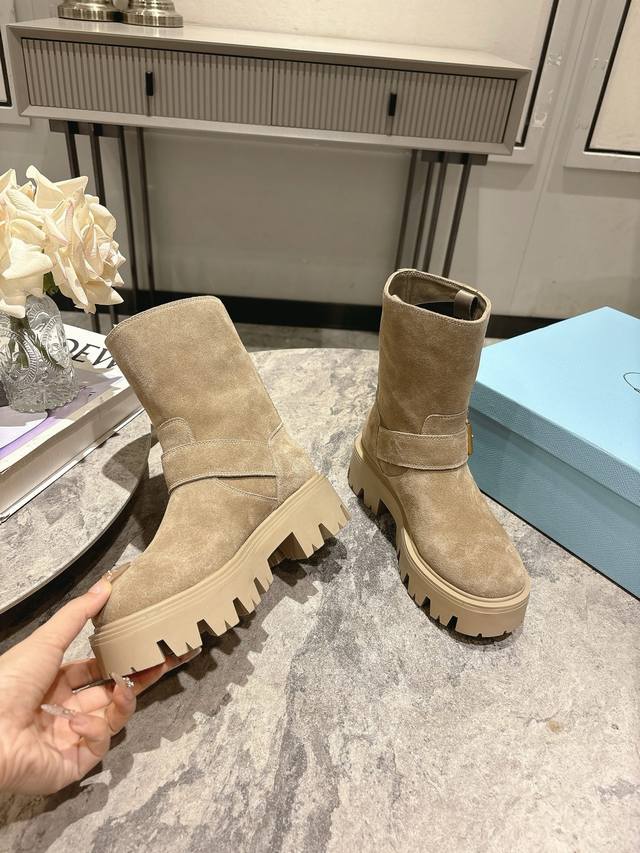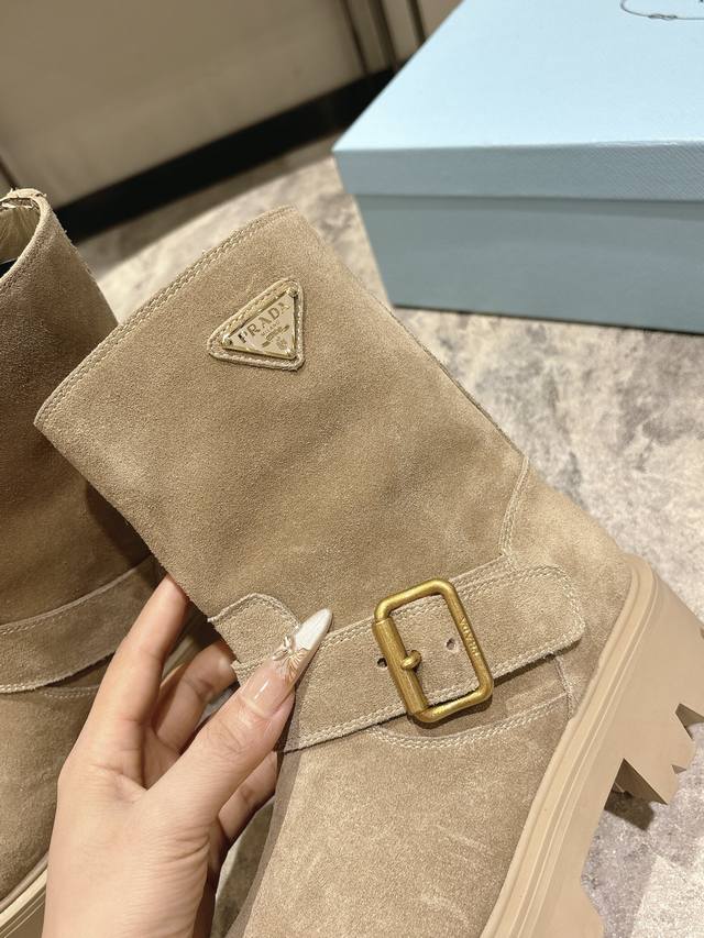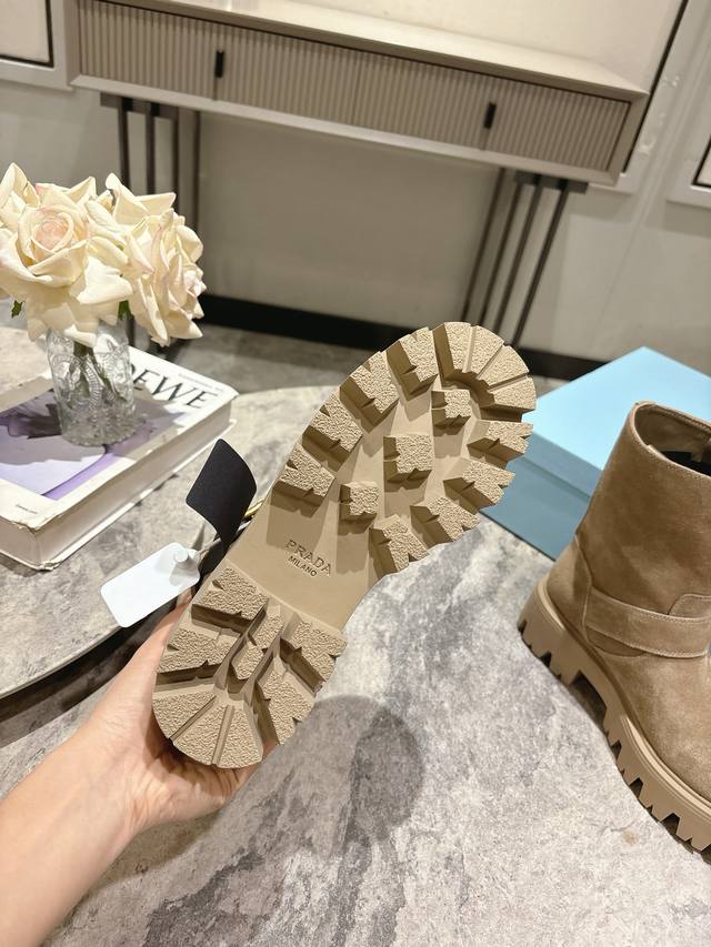 Prada 25Ss Autumn/Winter New Classic Triangle Logo Slip-on Ankle Boots DDD A series you can't buy this winter, definitely this year's hottest item!! Super good-looking DDD Prada boots are really amazing! DDD They look great on the feet, making your legs look slimmer and exuding elegance DDD Upper: Imported high-gloss suede calfskin DDD Insole: Imported calfskin lining DDD Outsole: Injected TPU outsole DDD Size: 35-39 40.41 Made to order, no returns or exchanges DDD