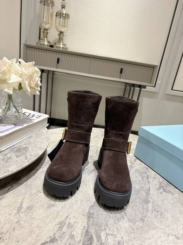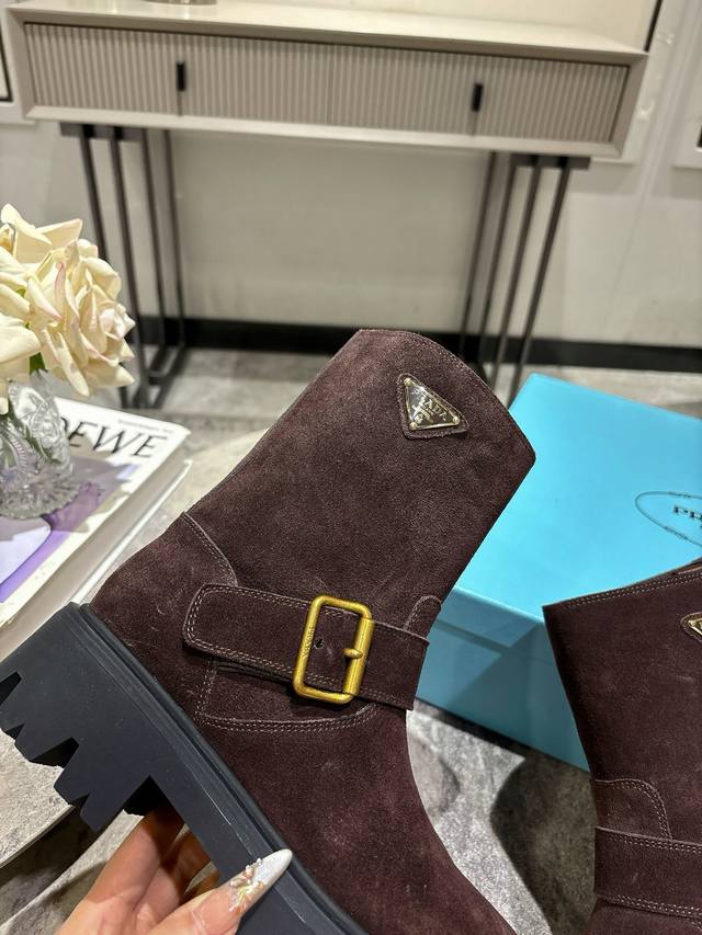 Prada 25Ss autumn/winter new classic triangle logo slip-on boots