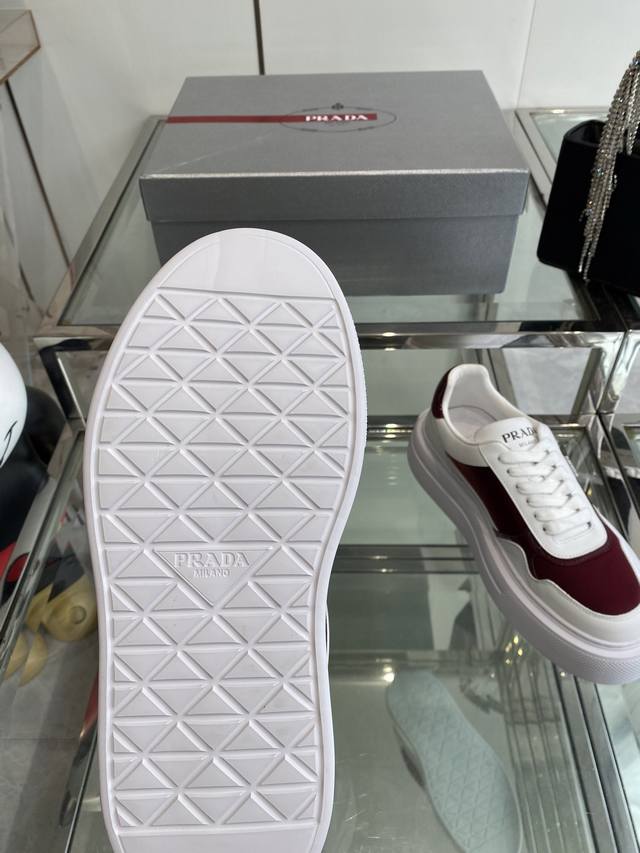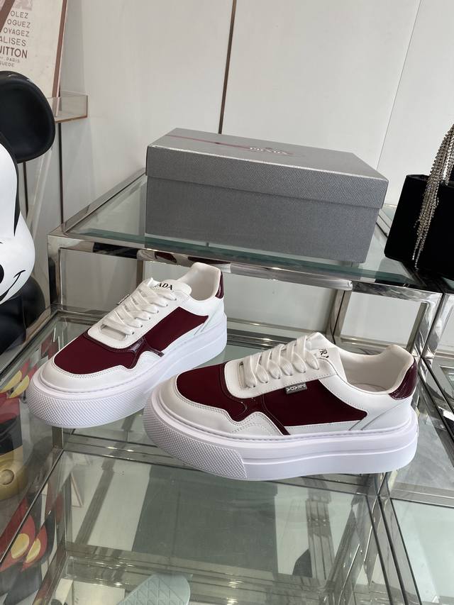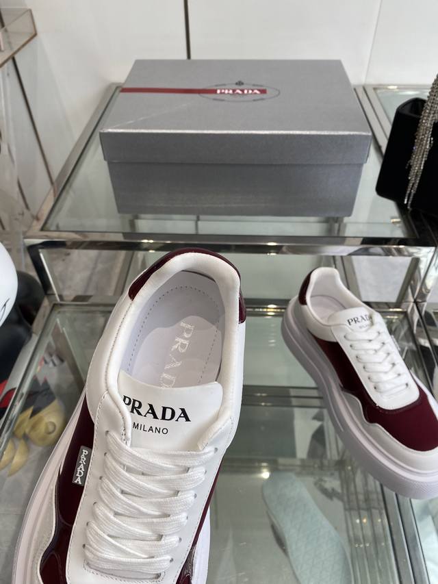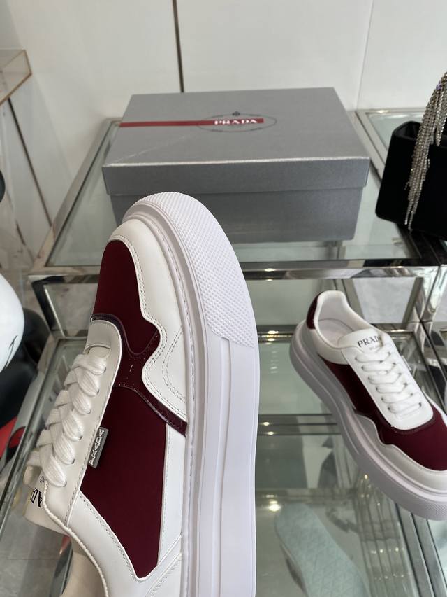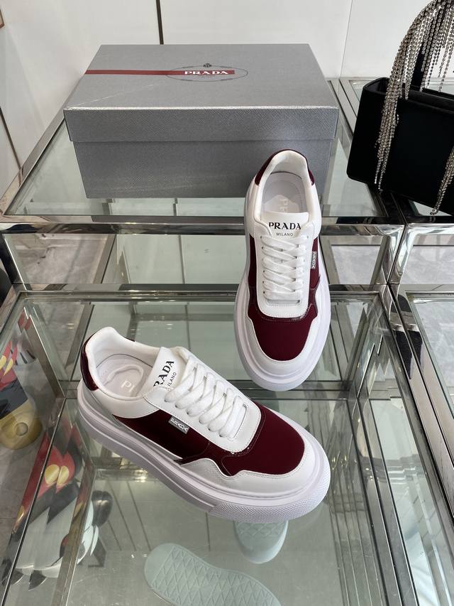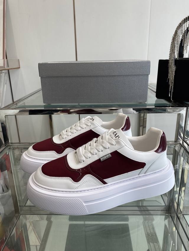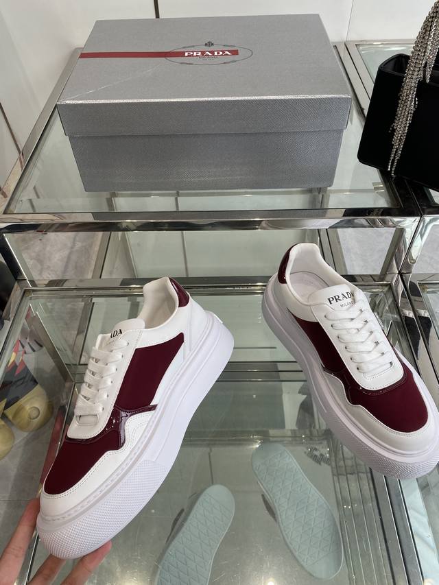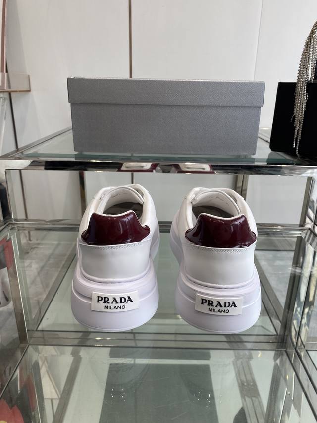 Prada 25Ss Spring/Summer Couple's Platform White Sneakers. Made with imported split-edge calfskin leather, featuring exquisite details and a triangular logo embellishment. Simple yet sophisticated! Most importantly, they make your legs look incredibly long! Sizes: 35-45 (Women's 40, Men's 45, custom made).