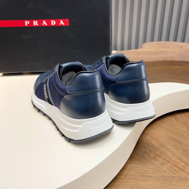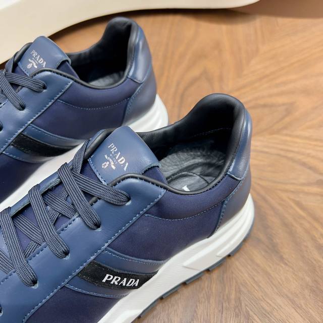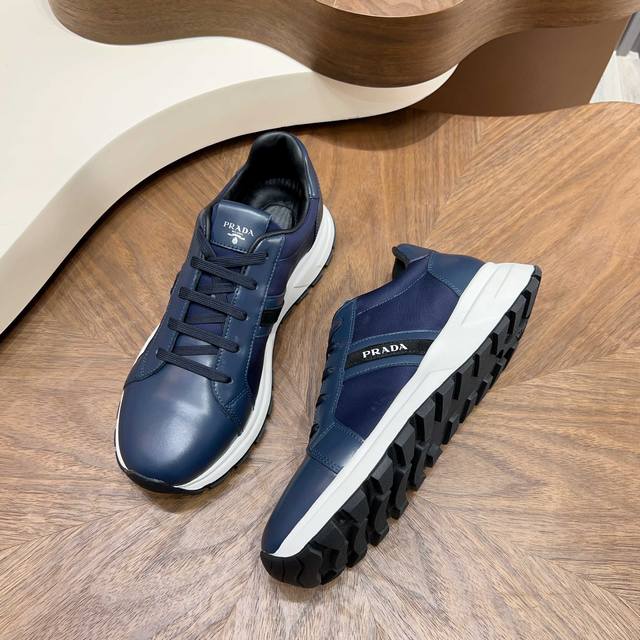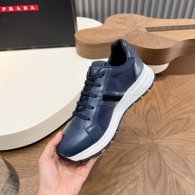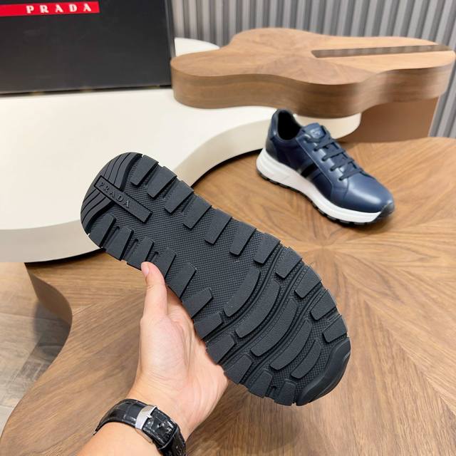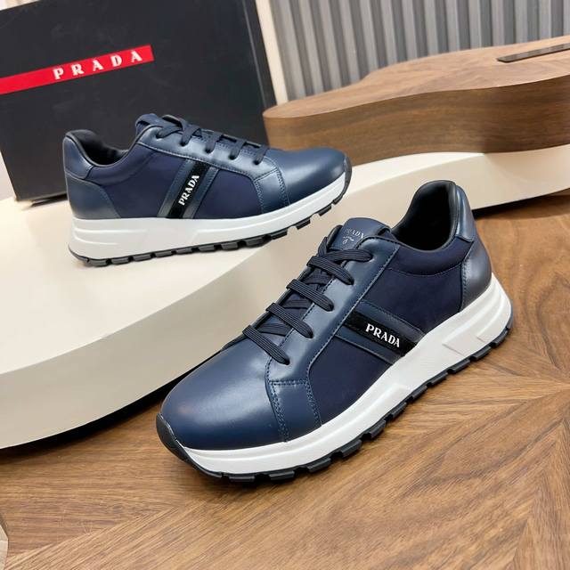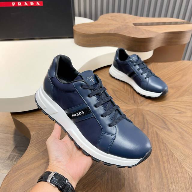 Prada Autumn/Winter Men's Leather Lace-up Sneakers (Ddd) Top-quality imported Nappa leather upper with a raised, layered design, lightweight, breathable, soft, and comfortable. Genuine calfskin trim adds a unique sporty touch. The leather tongue features the classic Prada logo, and a red rubber badge showcases the brand's style. A transparent air-cushioned midsole with a lightweight tread rubber outsole provides approximately 4cm of height. The fleece lining offers excellent comfort. Comes with original packaging. Sizes 39-44, 38, 45. Custom orders available. (Ddd) Sizes: 39-40-41-42-43-44. Standard leather shoe sizes available. (DDD)