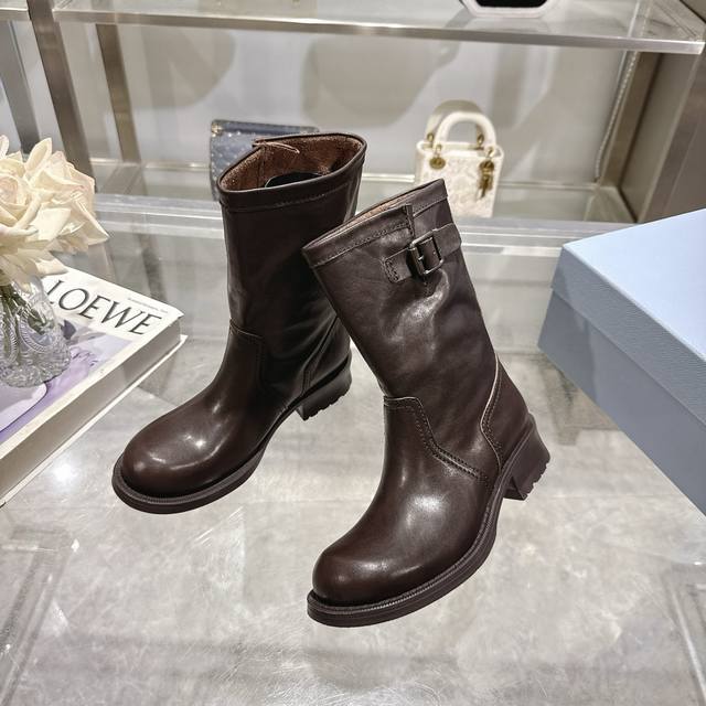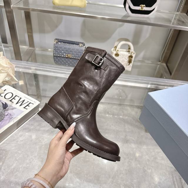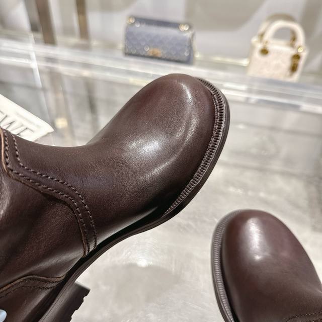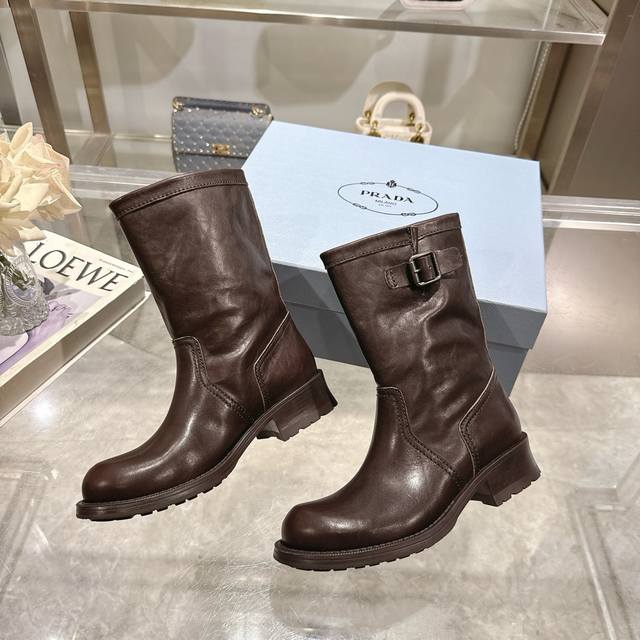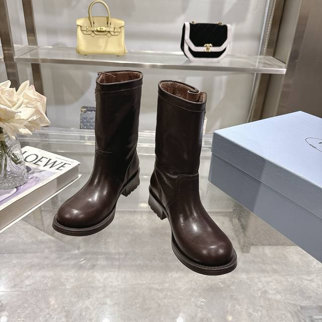Prada Autumn/Winter New Chunky Heel Riding Boots, Fashionable Platform Chelsea Ankle Boots. A unique style that everyone loves and is easy to wear. A hit every year. Plus, the versatile and classic last is enough to win you over. Perfect for both casual and casual occasions, simple and stylish on the feet. Made of resin-treated calfskin, water-dyed cowhide, genuine leather lining, and non-slip sole. Size: 35-40 DDD