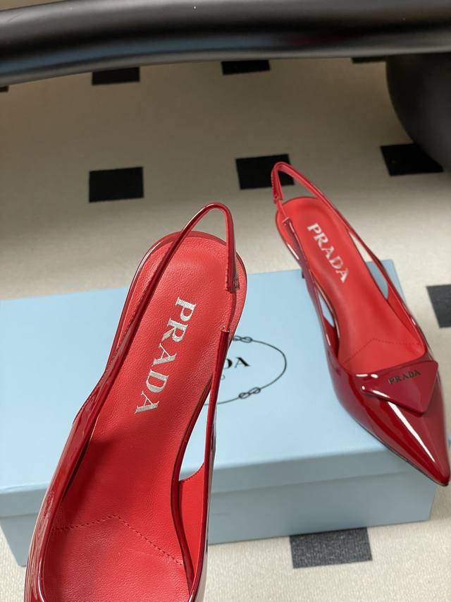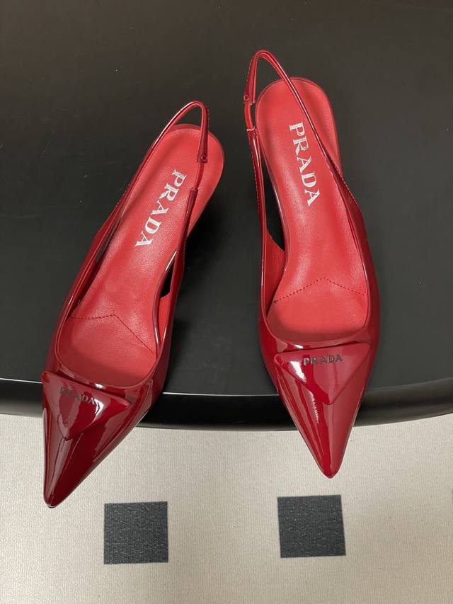 Prada classic triangle buckle pointed toe stiletto heel backless sandals kitten heel sandals Ddd Exquisite pointed toe heels, the long-awaited minimalist beauty of the fashion world Ddd Classic and fashionable color scheme, effortless elegance is here. Stylish, exquisite, and beautiful closed toe pointed toe Ddd Wearable, fashionable and elegant, simple new everyday slippers, beautiful and high-end. These slippers are super comfortable to wear and can lengthen the legs. Ddd These triangle buckle heels present a soft silhouette, with elegant contemporary style details that exude vitality. The pointed toe and open heel design, paired with a geometric heel and leather triangle logo, with thin padding to create a three-dimensional effect, showcasing a modern feel. Ddd Upper: cow patent leather with open edge Ddd Insole: sheepskin Ddd Heel height: 5.5Cm Ddd Sole: Italian genuine leather outsole Ddd Sizes: 35-39 34, 40, 41 Custom-made, no returns or exchanges Ddd