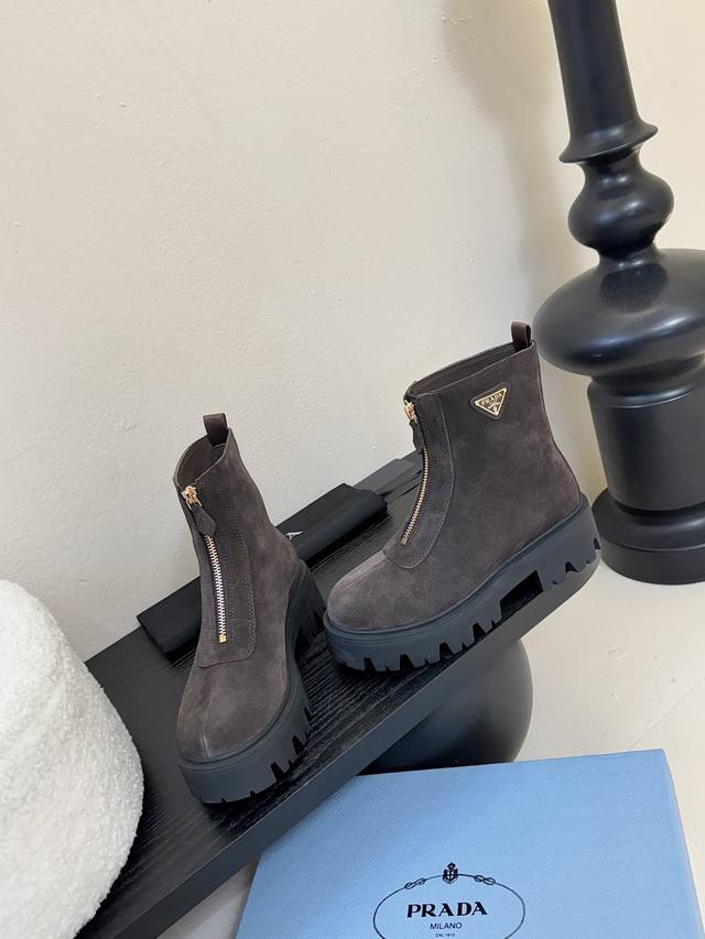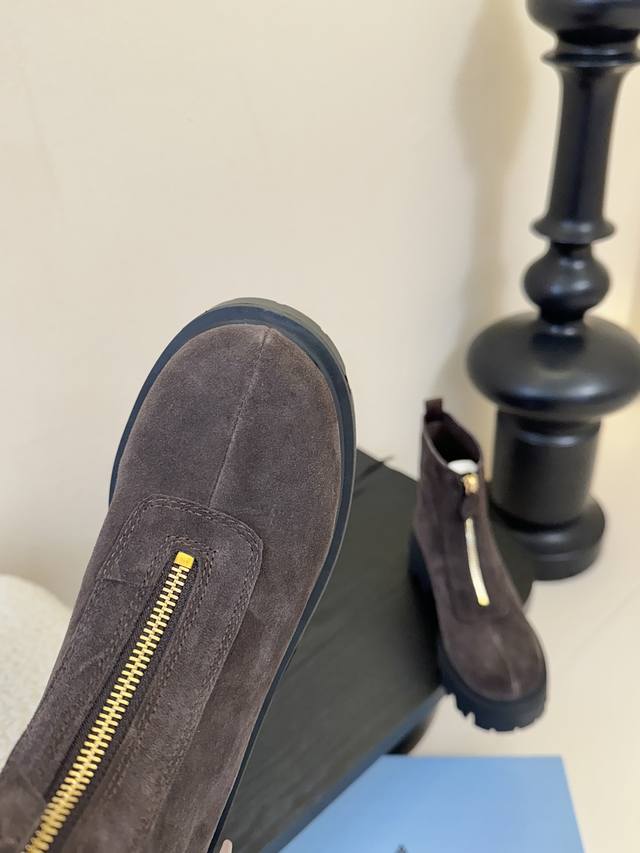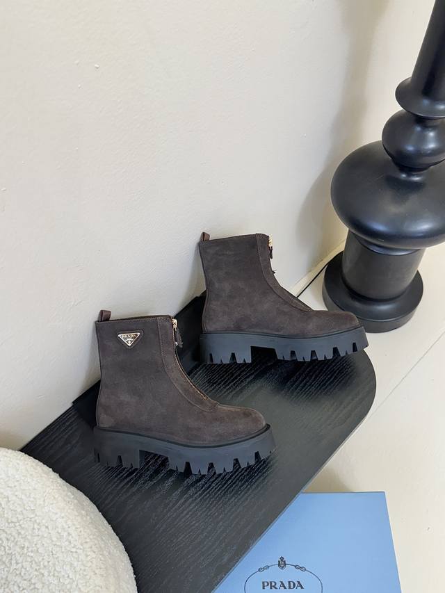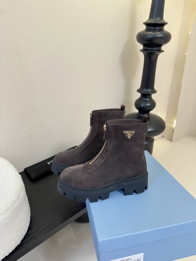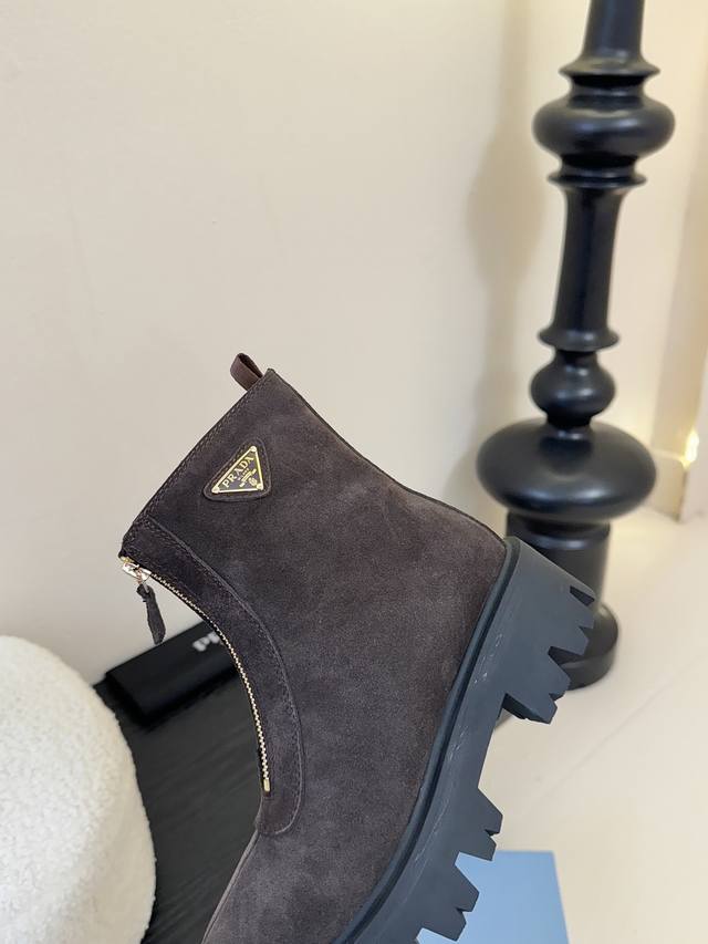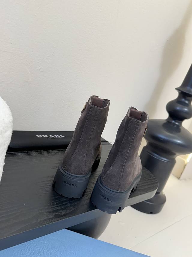 Prada classic triangle logo slip-on women's boots. A must-have for winter, this is definitely a hot item this year!! Super stylish! Prada boots are truly amazing! They look sophisticated and slimming on the feet, perfectly capturing a chic and elegant look. The entire series uses various imported materials: rubbed and waxed calfskin, split-edge beaded calfskin, high-gloss suede, and a lightweight and comfortable water-dyed sheepskin lining with a foam sole! Sizes: 35-41, 40, 41. Custom orders are non-refundable and non-exchangeable.