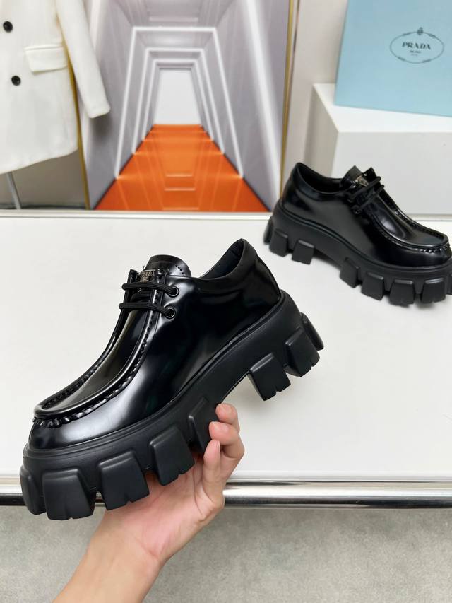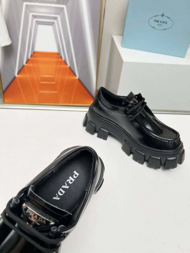 Prada Couple Style Loafers/Height-Increasing Leather Shoes - Hot New Arrival! Original Sample Replica! Flawless Edge Finish! Made with premium split-edge calfskin, truly top-tier quality. Please pay attention to the details and recognize the quality. Thick platform shoes, 6cm heel, non-slip sole, logo details, subtly paying homage to the brand's design heritage, creating a perfect style. A street-style statement, cool and chic, a classic shoe shape presenting exquisite texture! Possessing a high-end feel! Material: Grade A split-edge calfskin; Buckle: Original Sample Molding; Lining: Soft Silk Calfskin; Insole: Soft Silk Calfskin; Packaging: Full Original Gift Packaging; Sizes: Women's 35-40#, Men's 39-45#