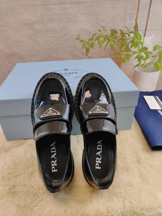 Prada Loafers Top-Tier Version Height-Increasing Leather Shoes are Now Available! Original Sample Replica! Flawless Edge Finish! Made with premium split-edge calfskin, truly top-tier quality. Please pay attention to the details and recognize the quality. Thick platform shoes, 6cm heel, non-slip sole, logo details, subtly paying homage to the brand's design heritage, creating a perfect style. A cool and stylish street style, a classic shoe shape that exudes exquisite texture! High-end feel!