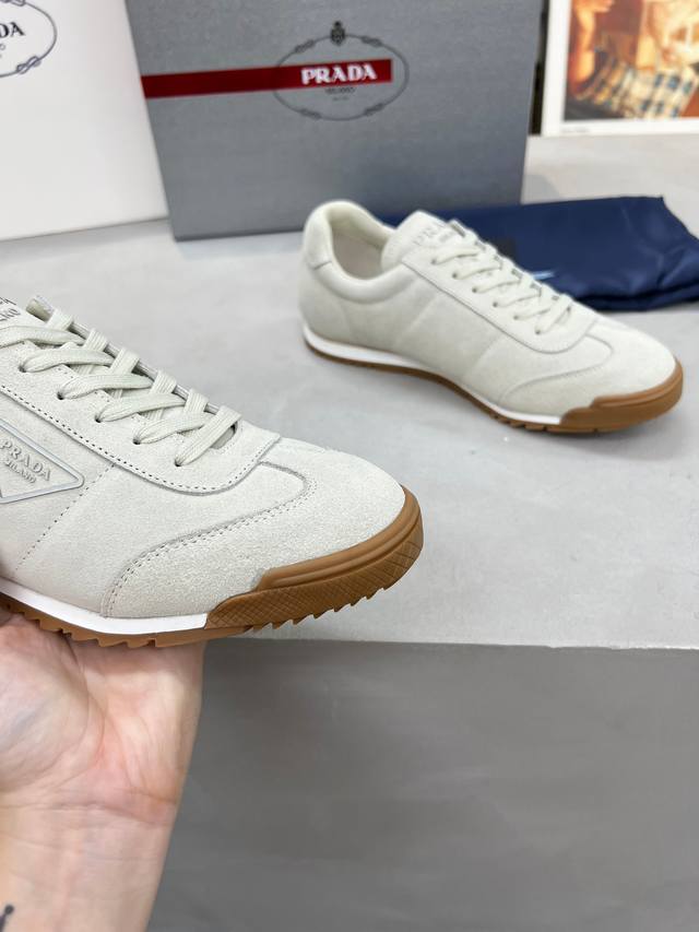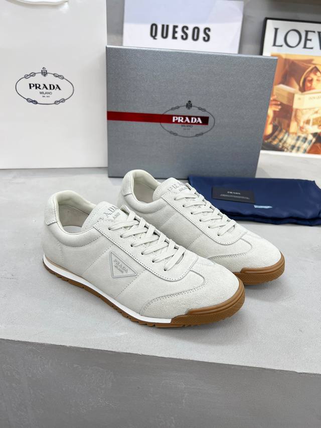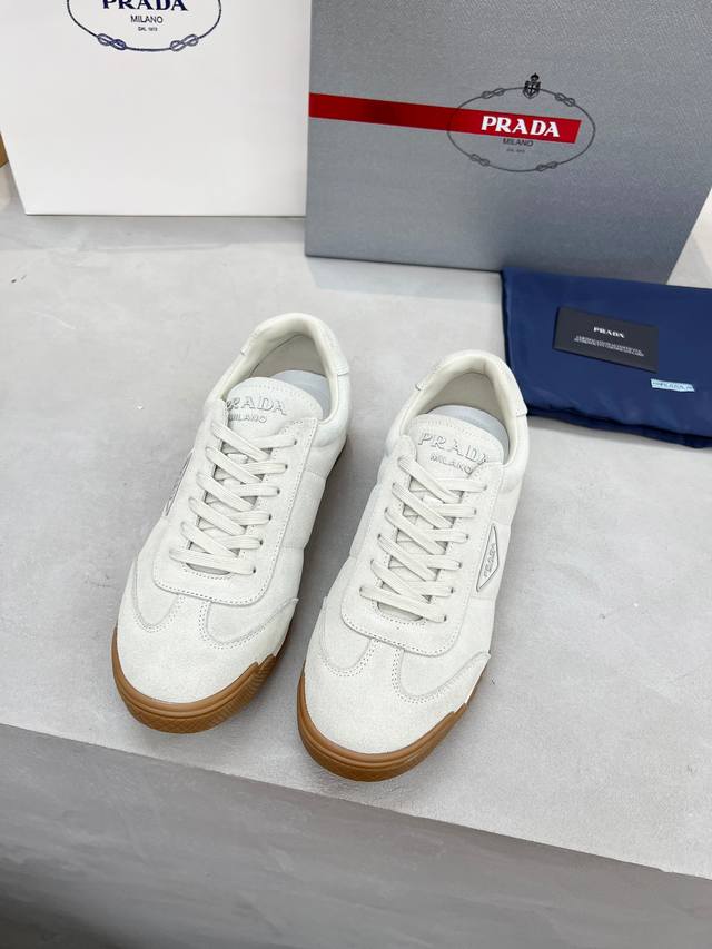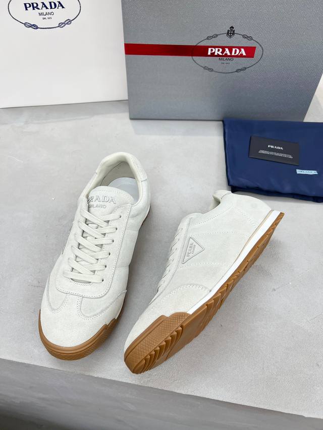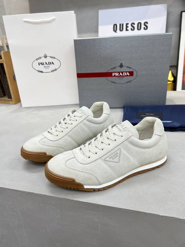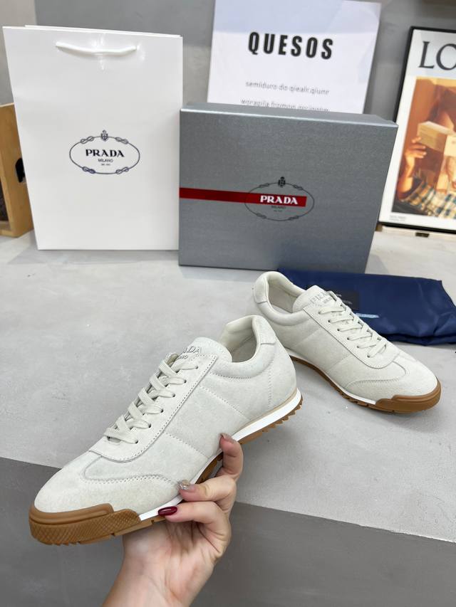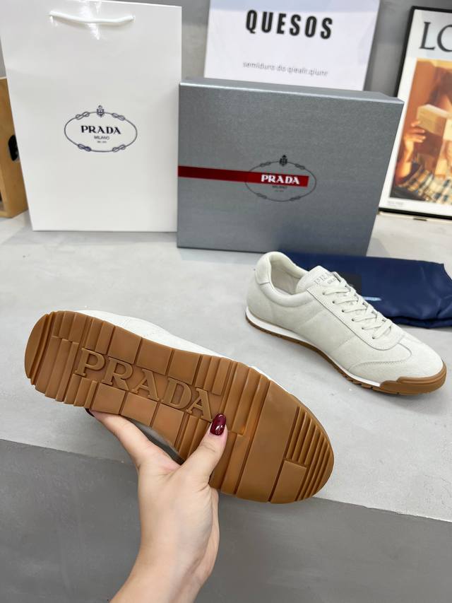 Prada couple's style, high-quality, fashionable and casual, trendy and versatile, relaxed sporty style, drip-glue finish, Italian imported cowhide upper, high-gloss cow suede and soft sheepskin lining, cowhide insole. Original personalized and stylish EVA outsole, lightweight and comfortable to wear. Sizes 35-45 DDD