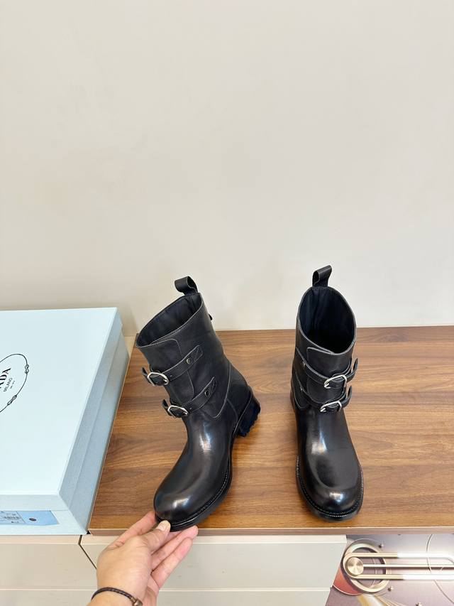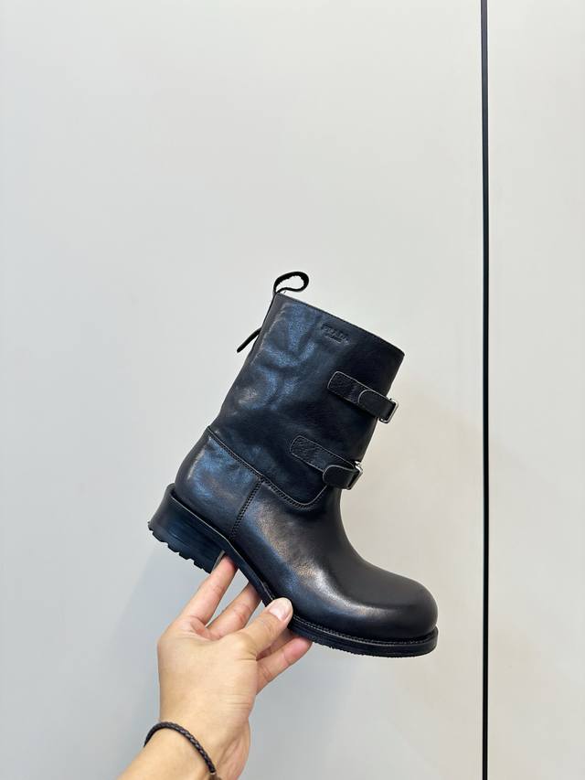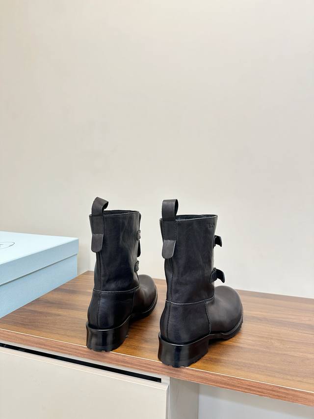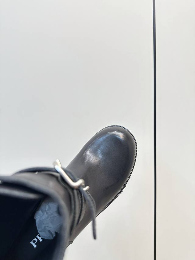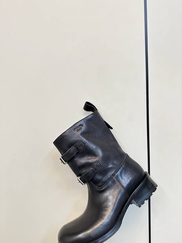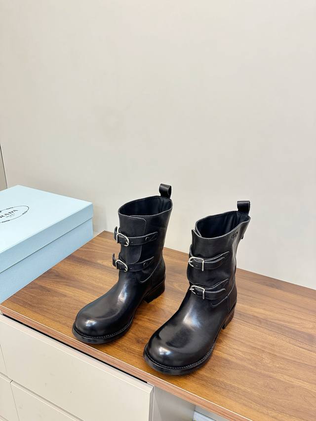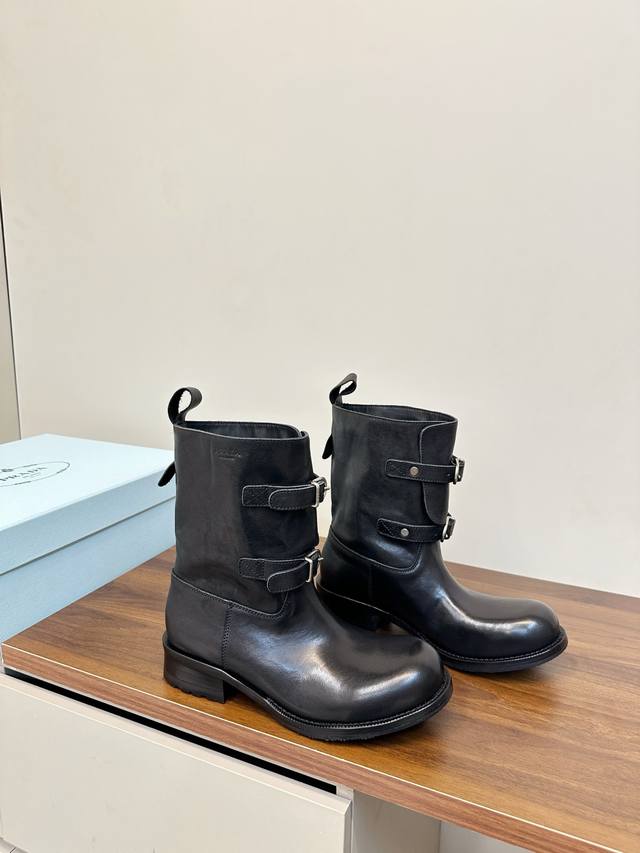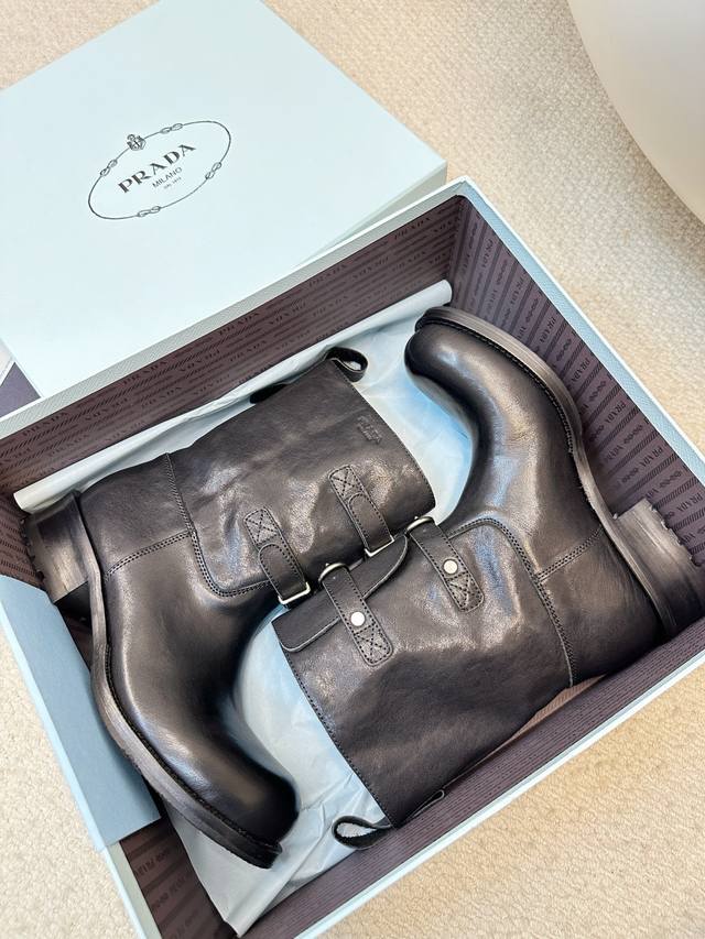 Prada Double Buckle Martin Boots, Fashionable Slouch Boots, Loose Ankle Boots DDD Prada 2025 Autumn/Winter Double Buckle Western Slouch Boots, made of vegetable-tanned washed calfskin, soft and wrinkled texture, with a retro distressed feel DDD. The double buckle design on the boot shaft exudes a strong equestrian style, and the chunky heel and platform sole provide stability and elongate the legs! Whether paired with jeans or a skirt, it easily creates a fashionable autumn/winter look, versatile and stylish DDD Material: Vegetable-tanned washed calfskin DDD Lambskin lining DDD Genuine leather combination outsole DDD Sizes 35-40 40.41 Custom made DDD