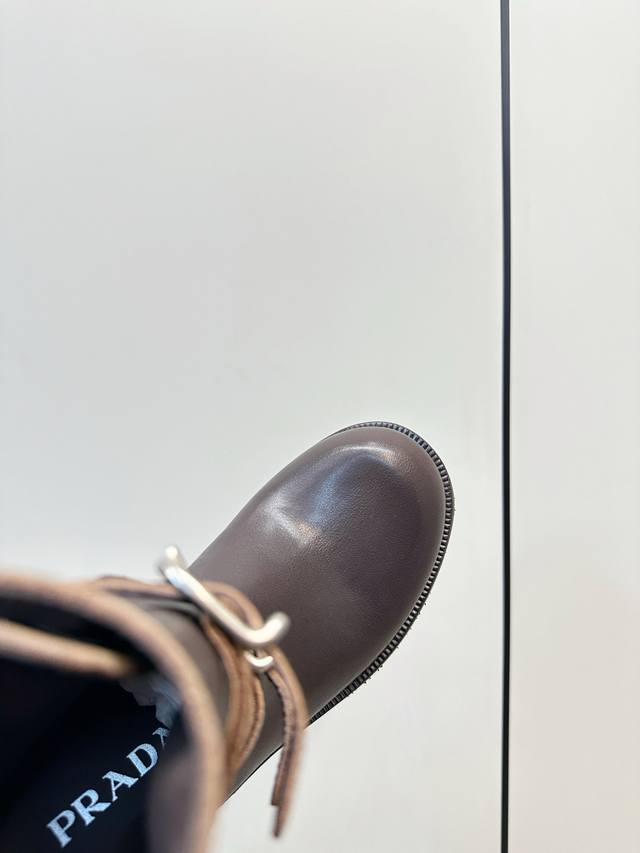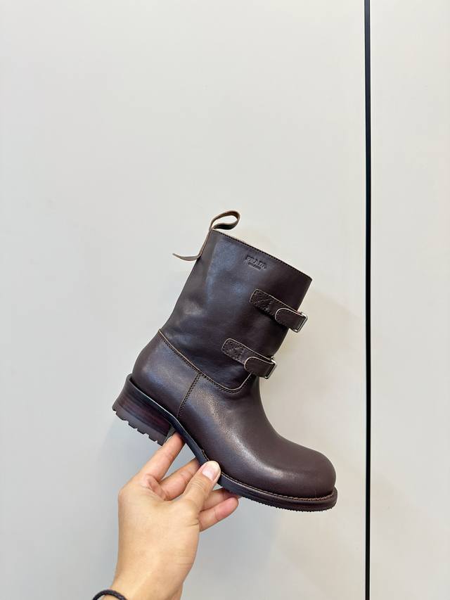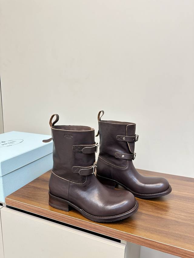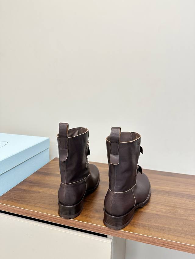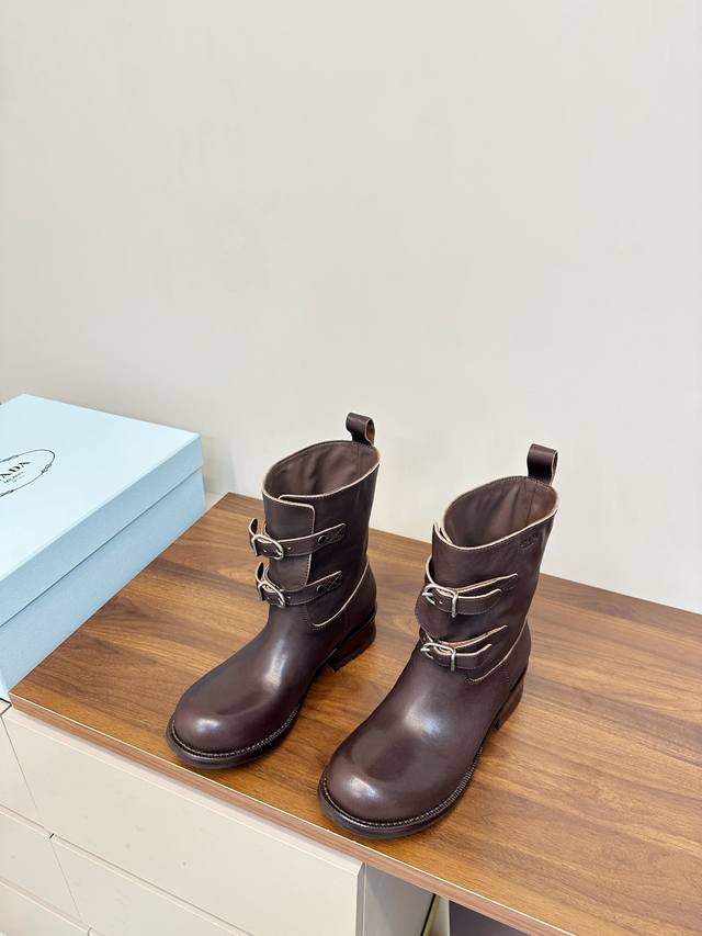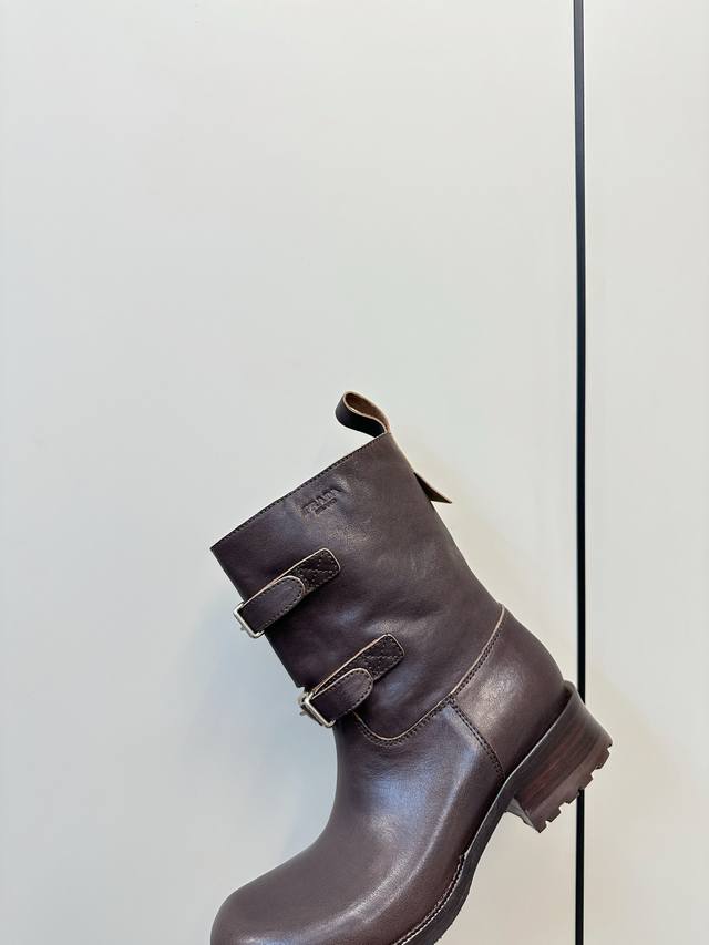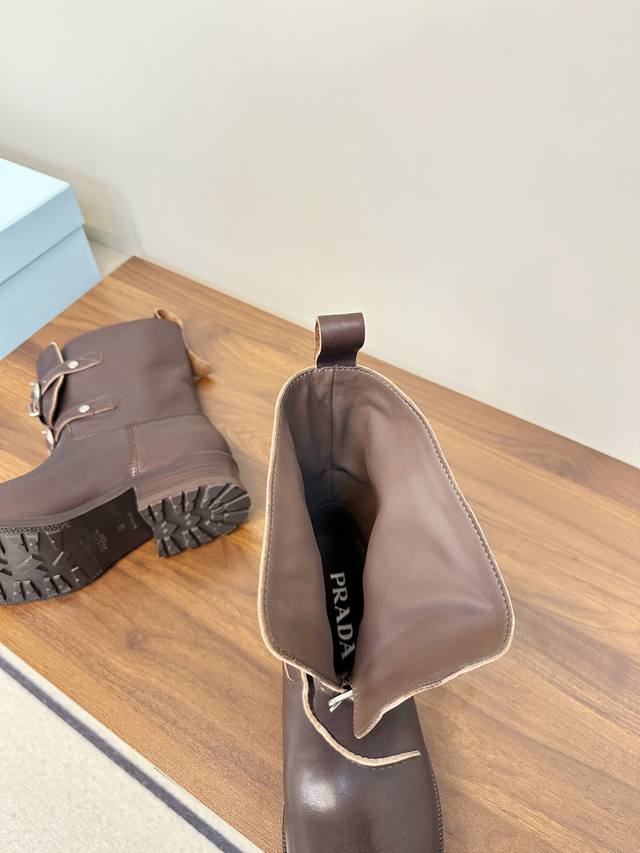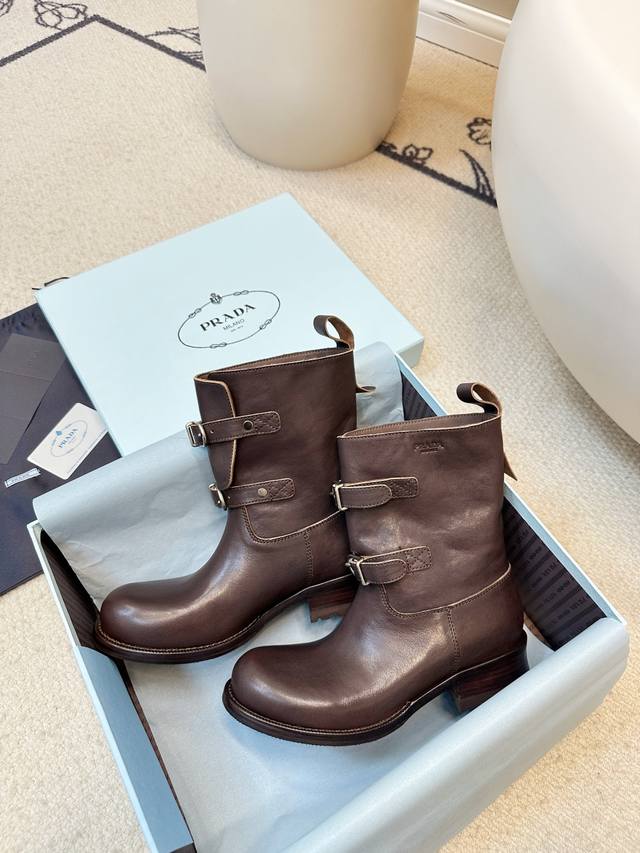 Prada Double Buckle Martin Boots, Fashionable Slouch Boots, Loose Ankle Boots DDD Prada 2025 Autumn/Winter Double Buckle Western Slouch Boots, made of vegetable-tanned washed calfskin, soft and wrinkled texture, with a retro distressed feel DDD. The double buckle design on the boot shaft exudes a strong equestrian style, and the chunky heel and platform sole provide stability and elongate the legs! Whether paired with jeans or a skirt, it easily creates a fashionable autumn/winter look, versatile and stylish DDD Material: Vegetable-tanned washed calfskin DDD Lambskin lining DDD Genuine leather combination outsole DDD Sizes 35-40 40.41 Custom made DDD