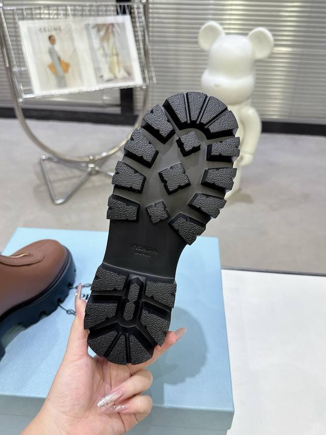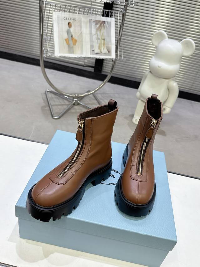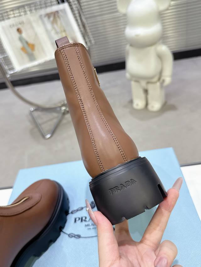 Prada Fall/Winter New Classic Triangle Logo Slip-on Martin Boots, Women's Ankle Boots, a must-have for winter! Absolutely a hot item this year!! Super stylish! Prada boots are truly amazing! They look sophisticated and make your legs appear slimmer, perfectly capturing a chic and elegant look. The entire series uses various imported materials: imported high-gloss cowhide, cowhide, and silk cowhide lining. Outsole: rubber foam sole, lightweight and comfortable! Size: #35-40 41 Custom orders are non-refundable and non-exchangeable.