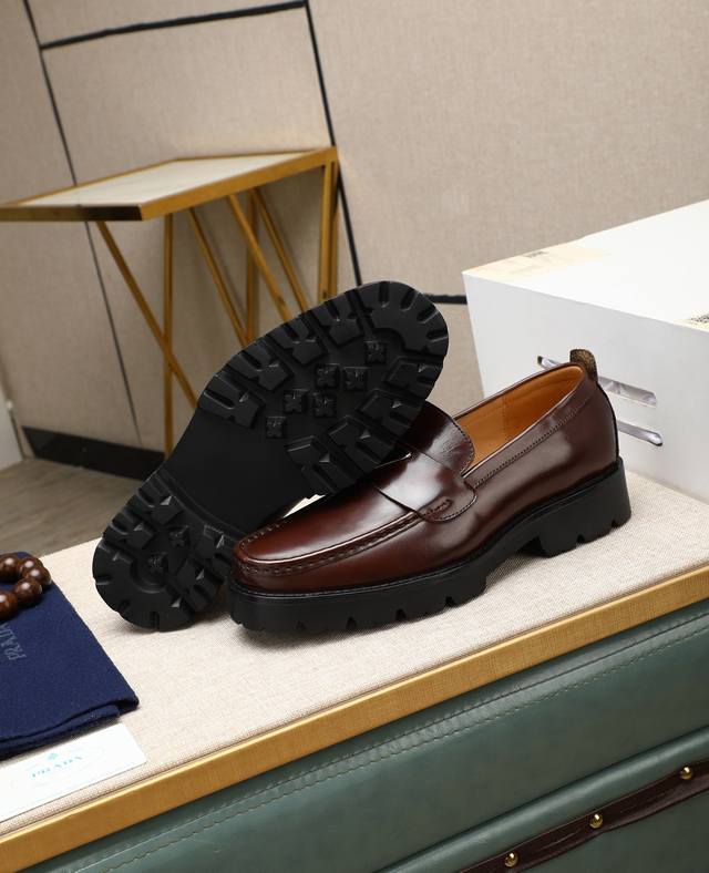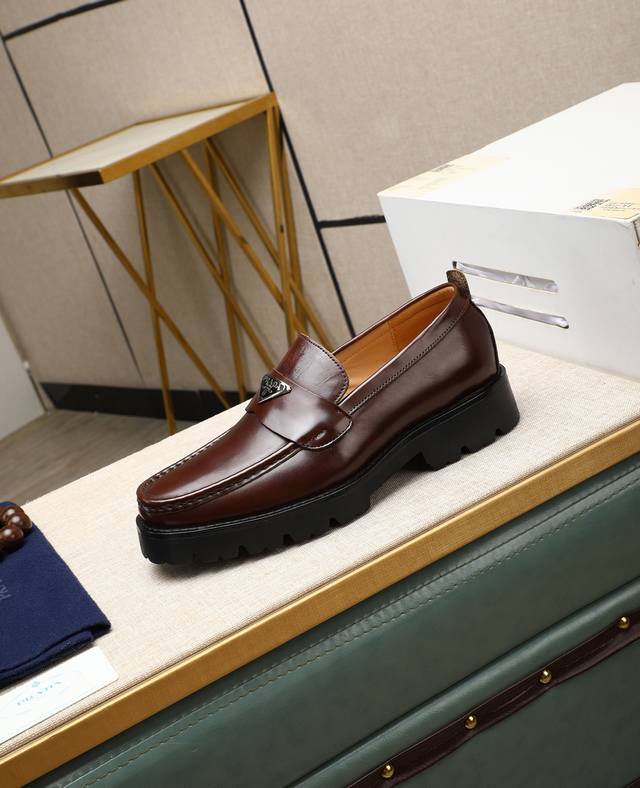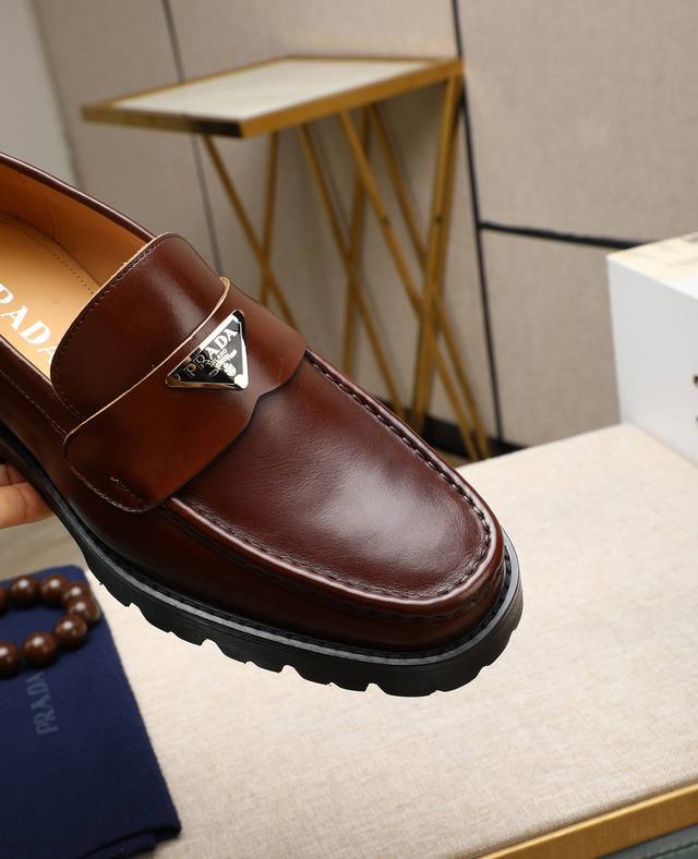Prada high-end boutique latest style formal business leather shoes with water-dyed calfskin lining, original quality! Imported Italian top-grain calfskin upper, cowhide lining, original outsole, formal size: 3845