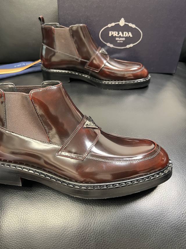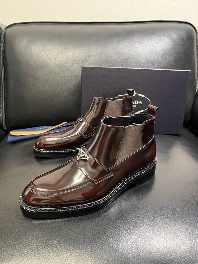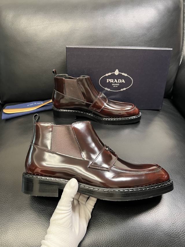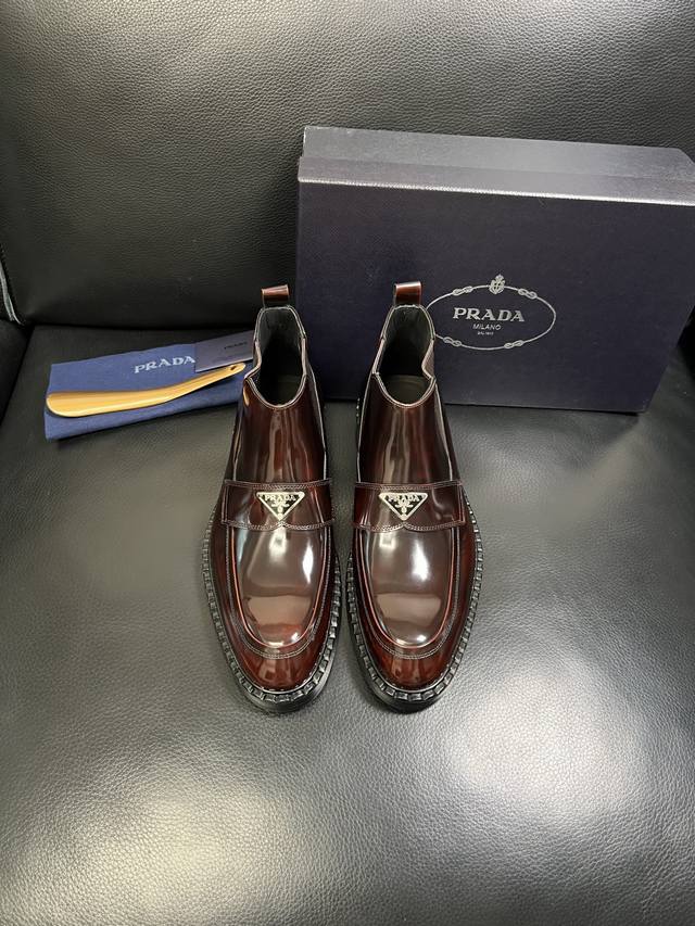 Prada high-quality, top-tier craftsmanship Prada leather shoes, same configuration as boutiques, Italian imported original cowhide upper, breathable and comfortable imported water-dyed cowhide insole, original factory-supplied sole for super comfort, original factory order, sizes 39-44, order 38 45 46 DDD