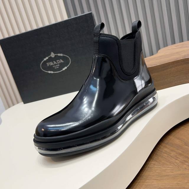 Prada Italian runway version genuine men's high-top slip-on air-cushioned shoes. Original factory super flexible air-cushioned outsole, silver Prada logo decoration on the heel, rubber bottom for high comfort and excellent anti-slip performance. Imported waxed cowhide, smooth leather with fine and even perforations, excellent texture. Slip-on design, unique geometric carving decoration, full calfskin lining, standard gold label insole, exquisite workmanship, ignoring market counterfeits, supports comparison and verification. Sizes: 38-39-40-41-42-43-44, standard leather shoe size 45. Order now!