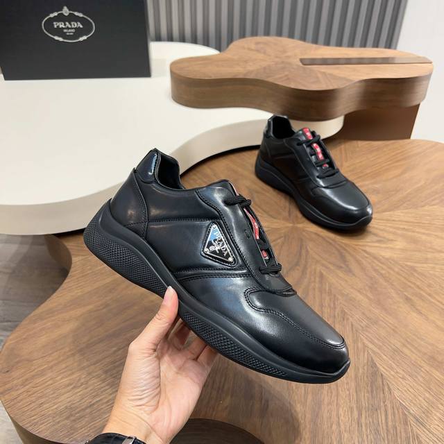 Prada Men's New Leather Sneakers (Ddd) These sneakers are crafted from imported calfskin leather, featuring a classic penny loafer upper design inspired by classic aesthetics. They are equipped with a 3.5cm lightweight, elastic rubber sole with the iconic red label, a fabric-leather mixed lining, and a silkscreened logo leather insole. The style is versatile and timeless, offering comfortable and breathable wear. Comes with full original packaging and a dust bag! (Ddd) Sizes: 39-40-41-42-43-44. Standard dress shoe size 45 is available; custom orders are possible but returns and exchanges are not supported. (Ddd)