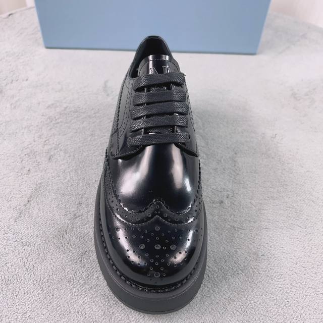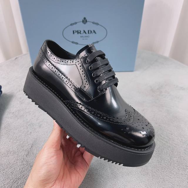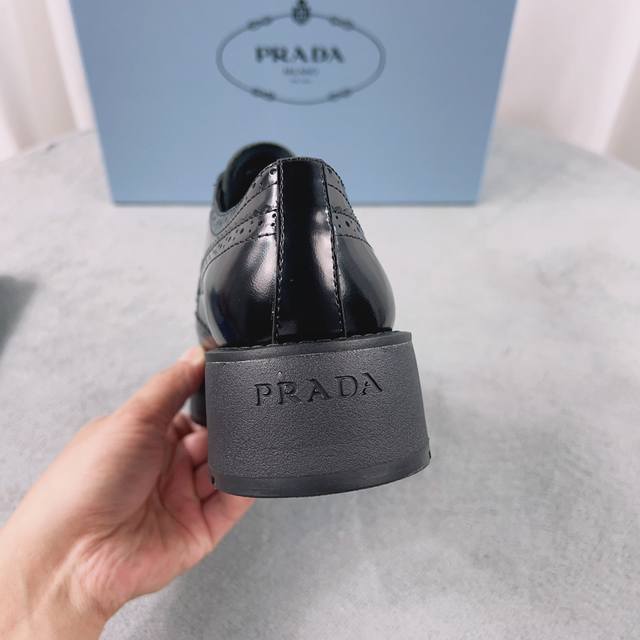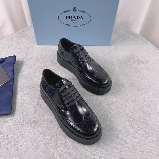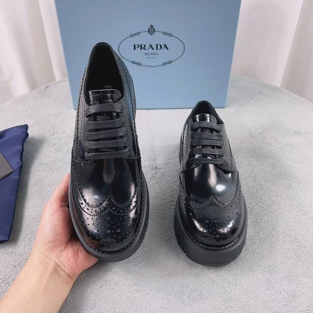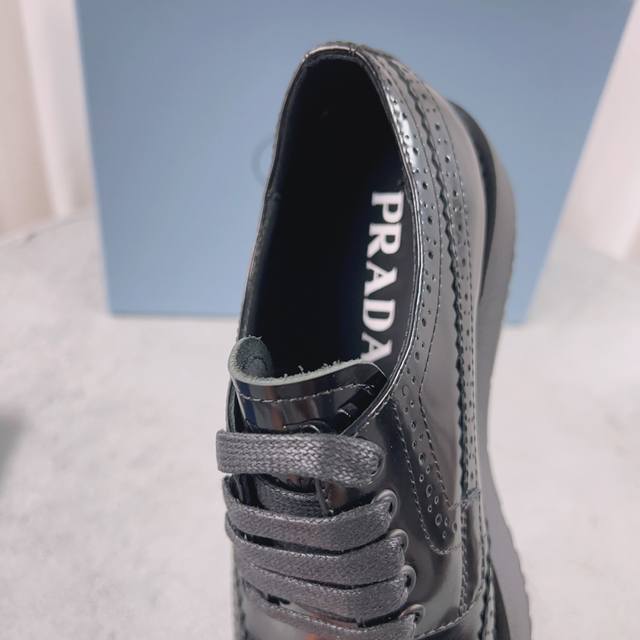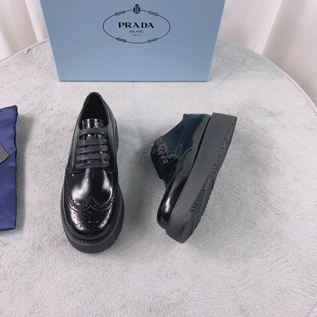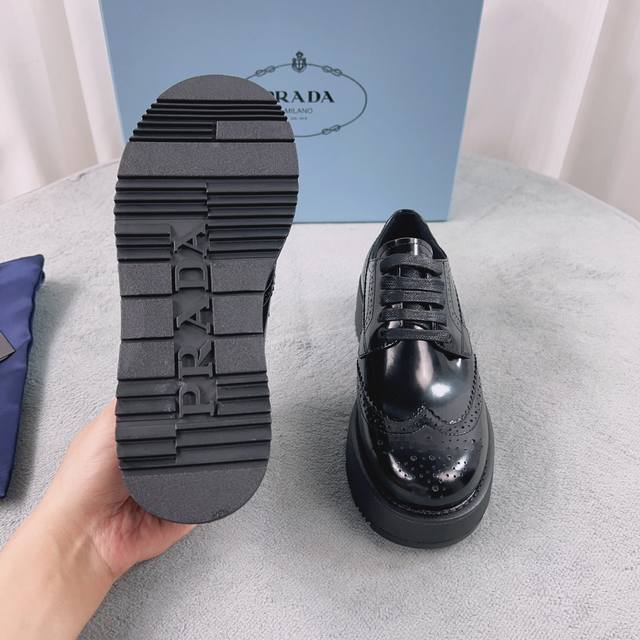 Prada New Loafers Upper: Imported split patent leather Lining: Mixed sheepskin Sole: Platform sole Heel height: 4cm Size: 35-41
