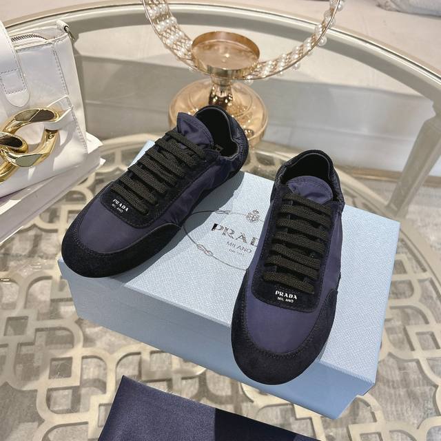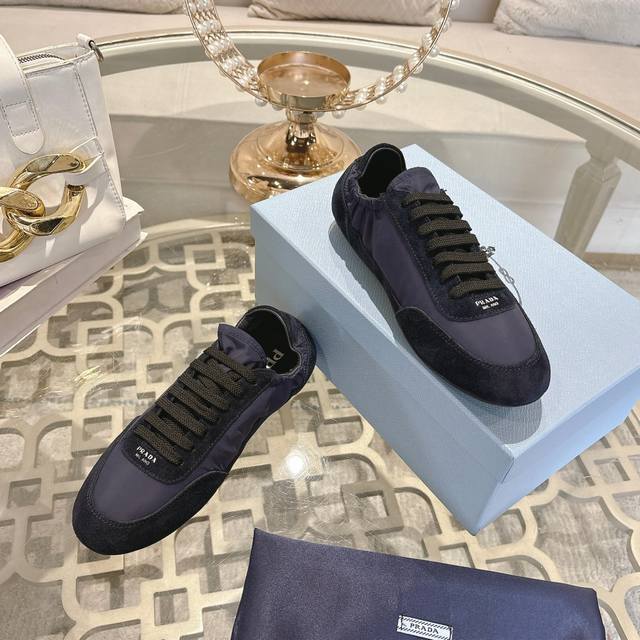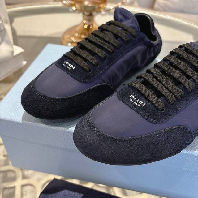 Prada, new model for early spring, 1:1 original design. Made of mercerized suede, with leather inserts and a rubber outsole. Women's sizes are 35 to 40. Men's sizes are 38 to 45,
