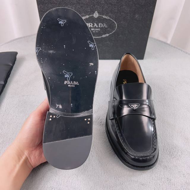 Prada New Model Upper: Imported split-bead cowhide Lining: Imported soft cowhide Footpads: Split-bead + cowhide combination Sole: Original 1:1 genuine leather outsole Sizes: 38-45