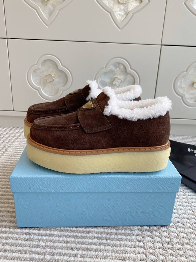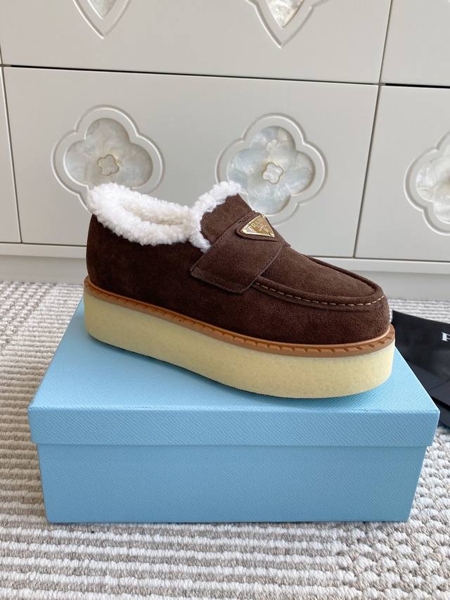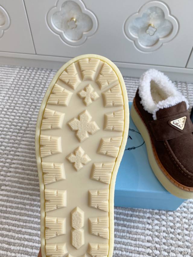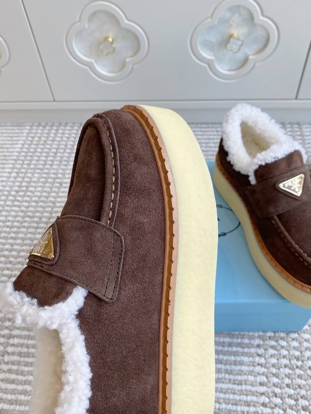 Prada New Triangle Logo Thick-Soled Wool Loafers/Snow Boots DDD Material and Craftsmanship: DDD Original Custom Imported Sheepskin ...