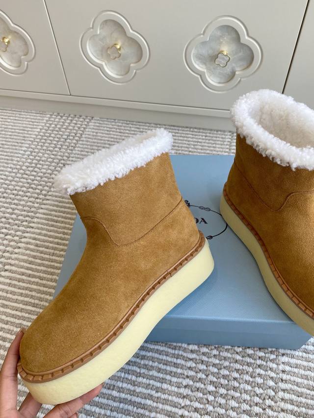 Prada New Triangle Logo Thick-Soled Wool Snow Boots DDD Material and Craftsmanship: DDD Original Custom Imported Sheepskin 160% Genuine Wool Warmth Must-Have DDD Zp Mold Opening Rubber Non-Slip Outsole DDD Size: 35-39 40, 41 Made to order, no returns or exchanges DDD
