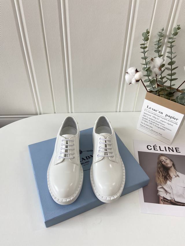 prada Prada couple casual leather shoes, 1:1 original purchasing quality, top quality goods, upper imported open edge pearl cowhide, inner padding are made of imported cowhide, with original foam outsole, comfortable and wear-resistant