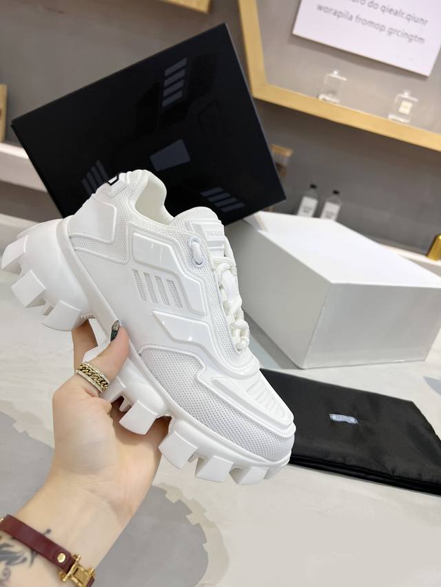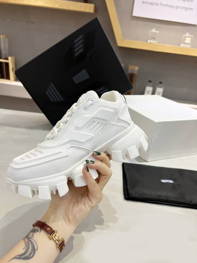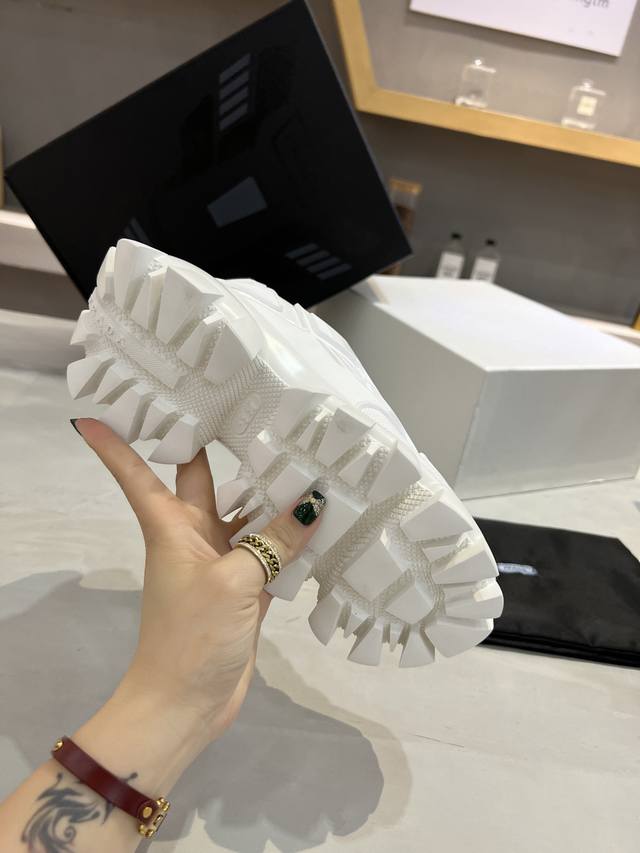 Prada premium quality, the latest Prada runway shoes are here! These chunky sneakers from the Prada early spring runway collection have a fresh, slightly expensive feel. They look absolutely perfect on the feet, elegant and sophisticated. Crystal clear, every material and component is a unique 1:1 replica, a near-perfect match to the original. 1. Upper: Imported space cotton + KPU injection molding 2. Lining: Imported silk sheepskin lining 3. Outsole: 1:1 molded rubber foam ultra-lightweight outsole 4. Original packaging Heel height: 5cm 5. Sizes: 35-44 45 Orders are non-refundable and non-exchangeable.