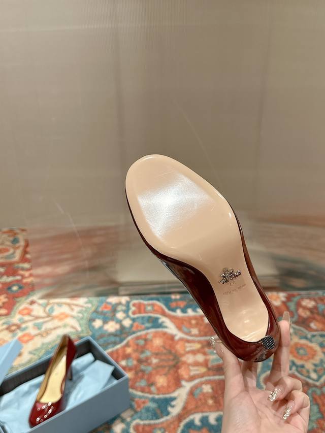 Prada Retro Cute Princess Candy Style Flats, a must-have for girls. A must-have for many online influencers, Prada is perfect for important occasions. These shoes offer a fresh and slightly luxurious feel, looking absolutely stunning on the feet. They are elegant and sophisticated, crystal clear, and all accessories and materials are exclusively 1:1 custom-made, ensuring a near-perfect replica. The entire collection is full of exciting and unexpected elements, with different materials and textures creating a strong artistic feel, allowing you to experience the ever-changing style of the Prada girl. Upper: Made with split beads; Lining: Imported soft lambskin; Outsole: Italian original genuine leather; Heel: 9.5cm; Size: 35-39, 40-41. Custom-made, no returns or exchanges.