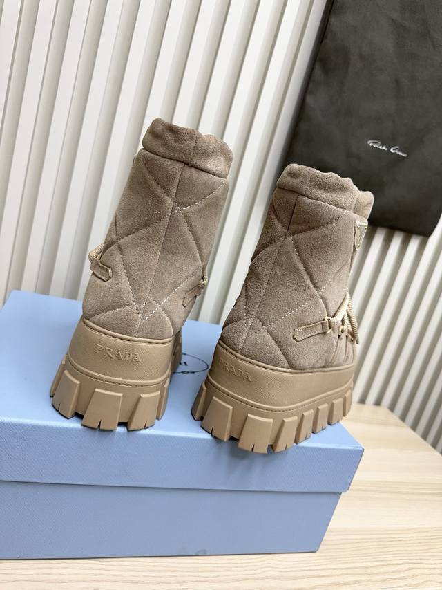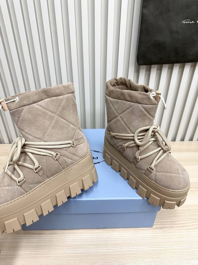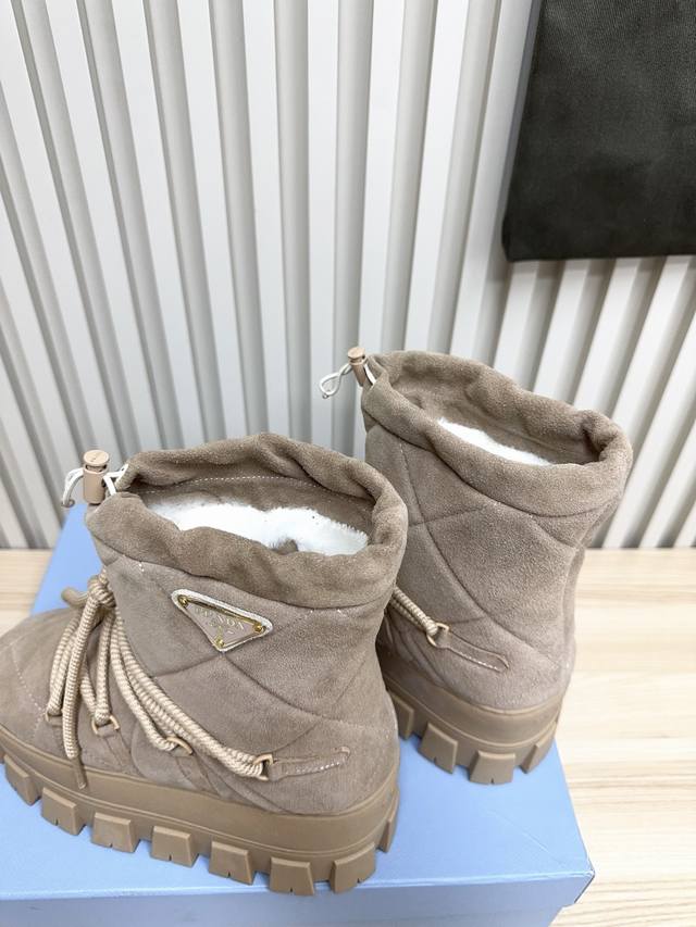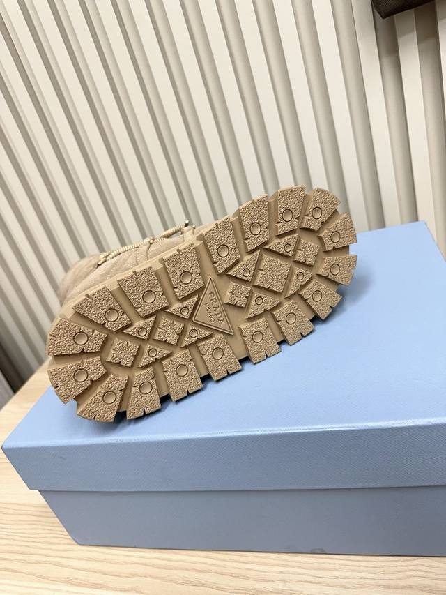 2024 Autumn/Winter Newest Snow Boots! The wool collar design echoes the Prada brand logo, highlighting its high-end and sophisticated style! Made with imported Australian sheepskin lining, providing excellent warmth in winter.