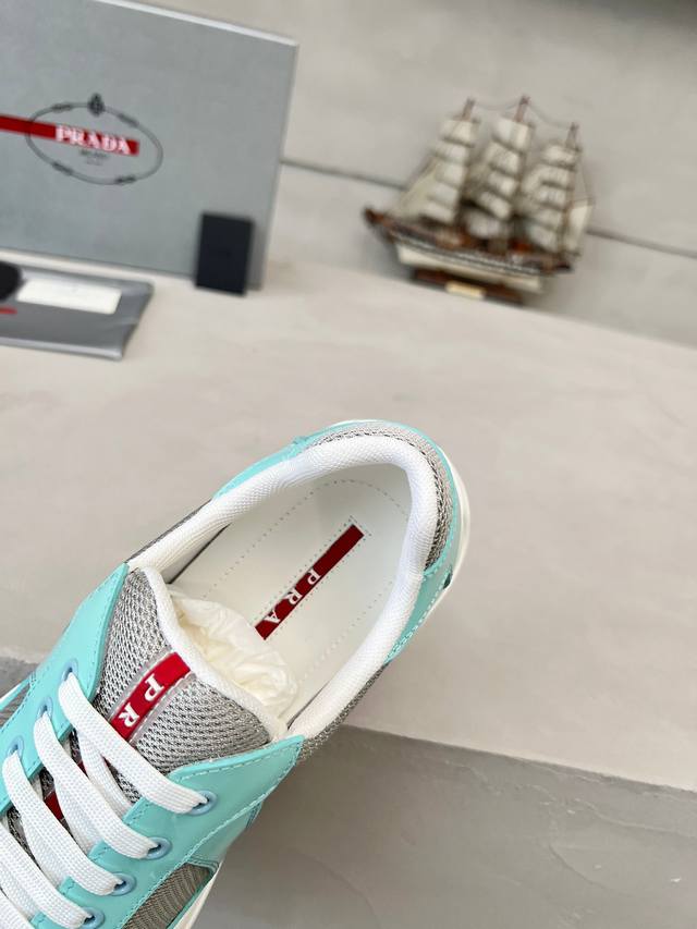 Prada top-of-the-line sneakers. Features include an imported flyknit upper with