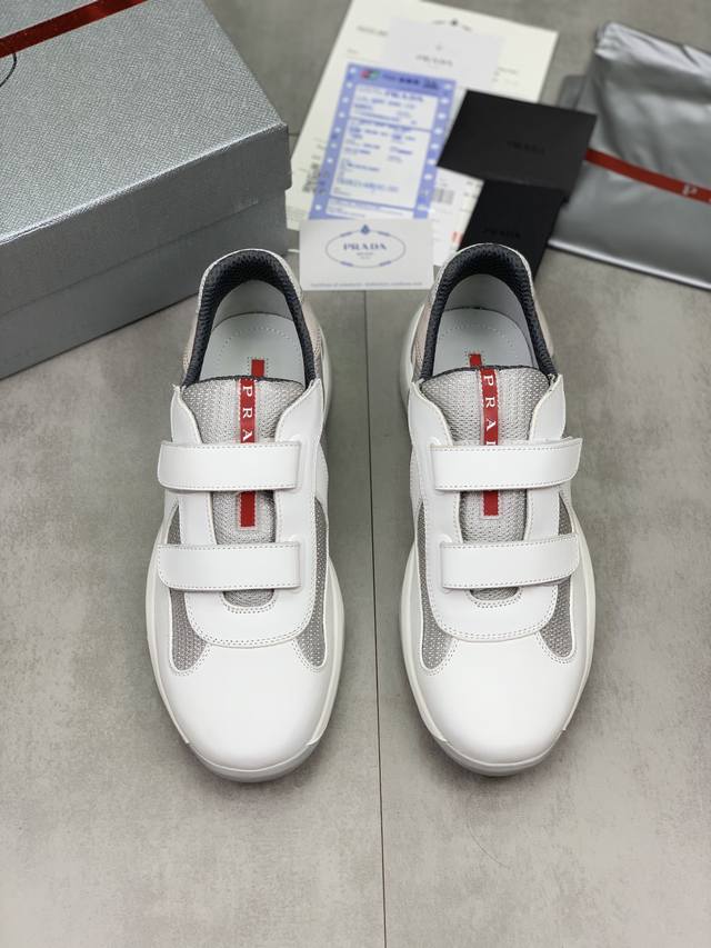 Prada top-of-the-line sneakers. Features include an imported flyknit upper with