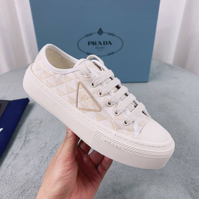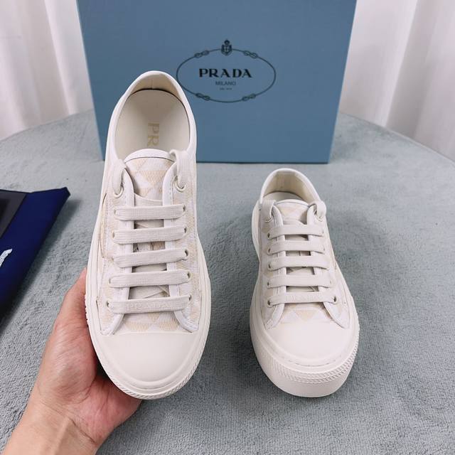 Prada Top-Tier Version Upper: Washed canvas + epoxy resin finish Lining: Imported mixed sheepskin Outsole: Composite TPU durable outsole Sizes: 35 41