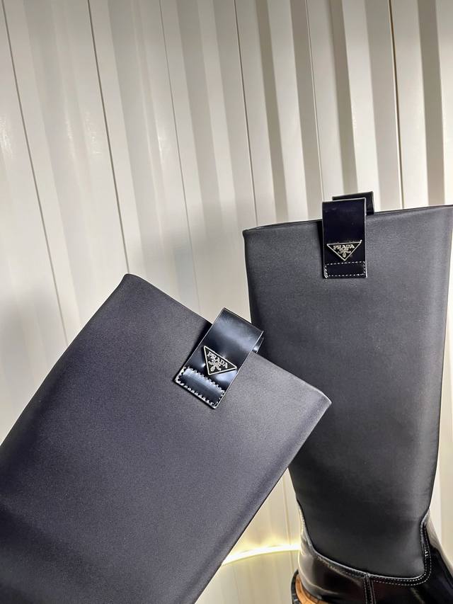 Prada Triangle Logo Double-Striped Serrated Platform Lace-up Ankle Boots with Side Zipper, Martin Boots, Motorcycle Style Short Boots